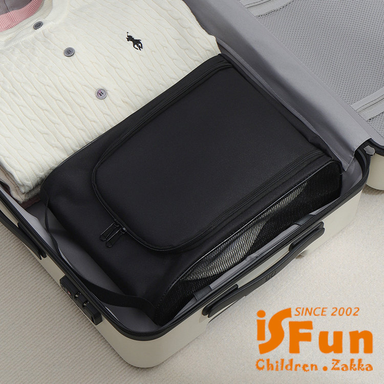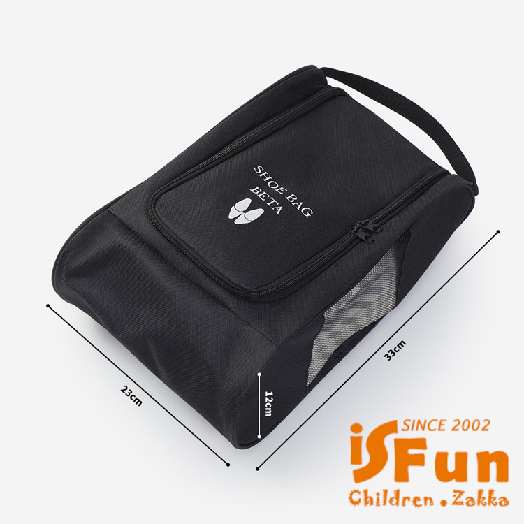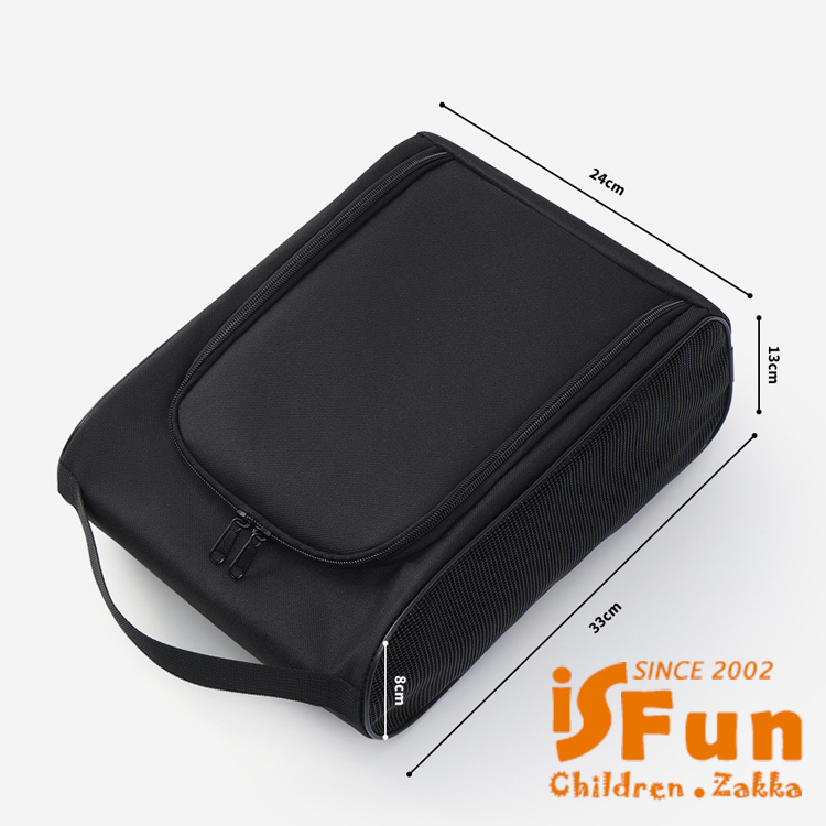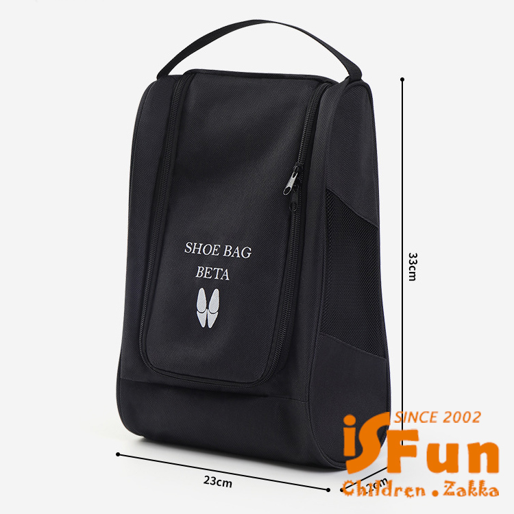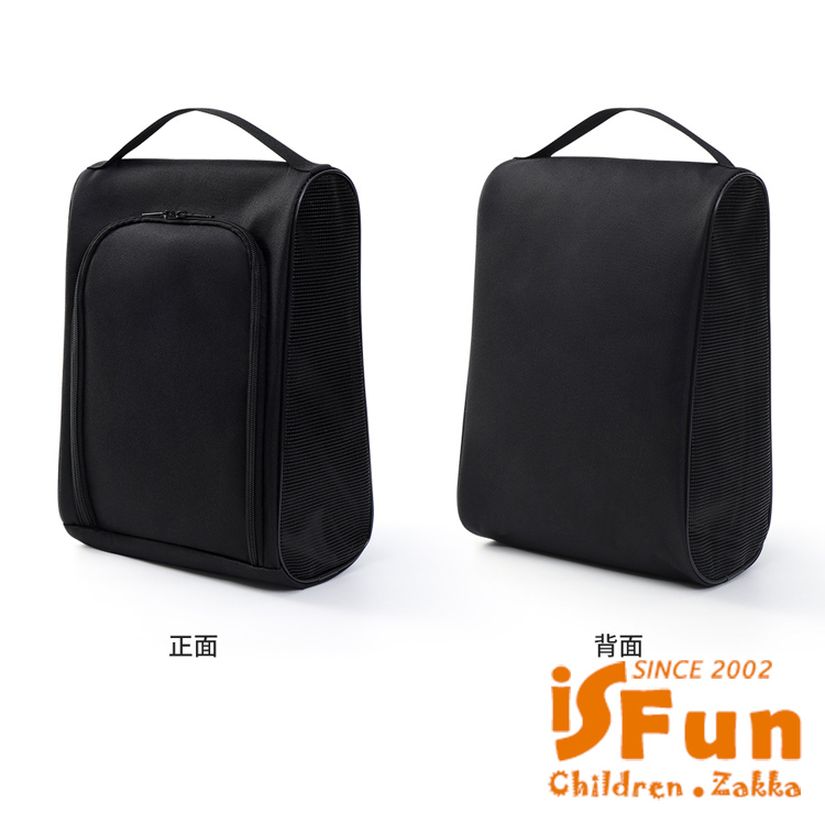 【iSFun】立體牛津 大尺寸可掛透氣旅行外出鞋袋/黑