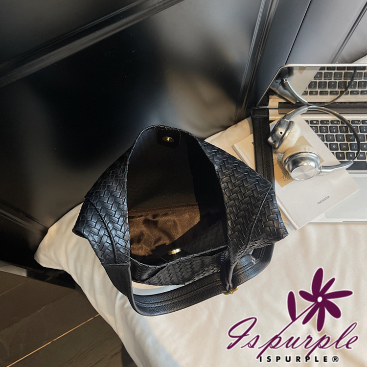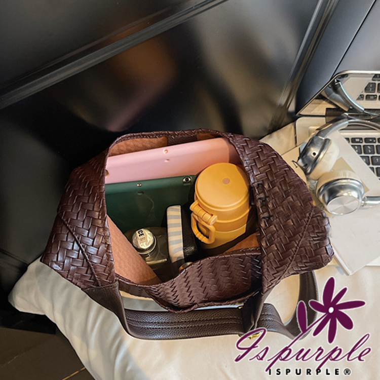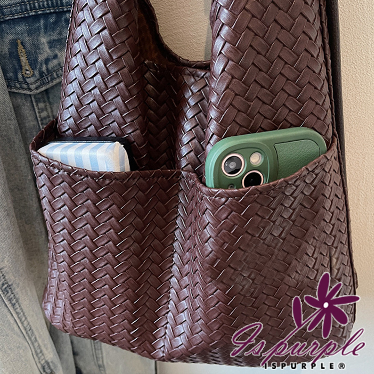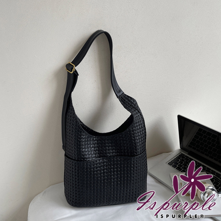 【iSPurple】韓風時尚 仿皮編織壓紋復古百搭托特包/黑色