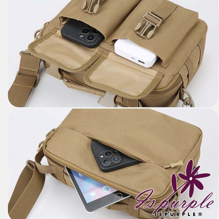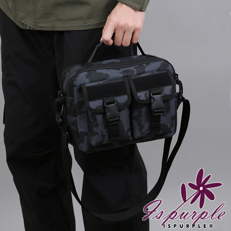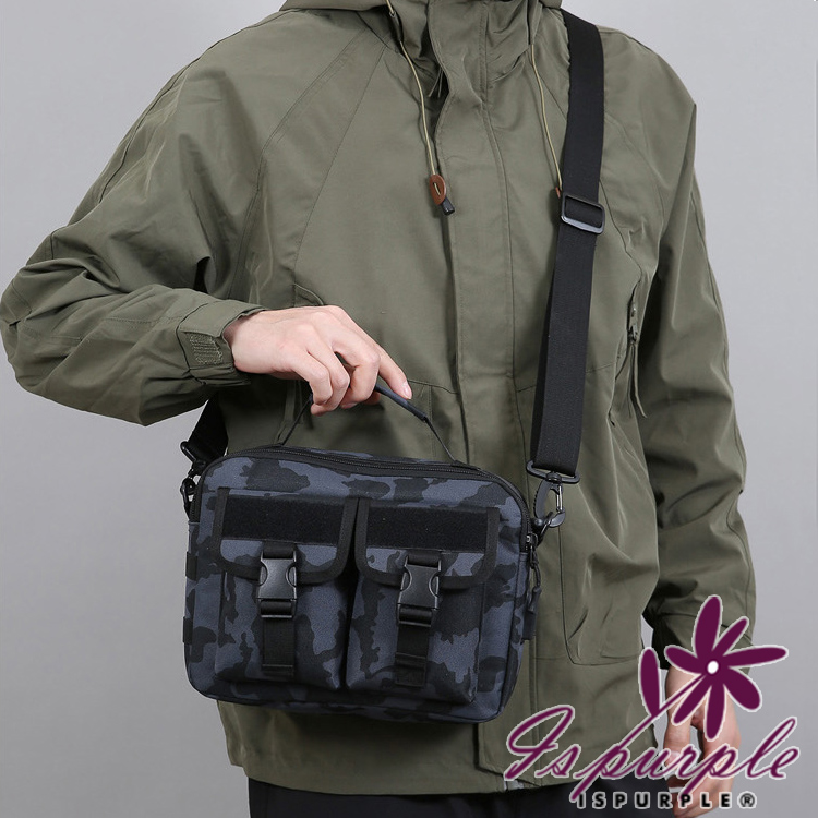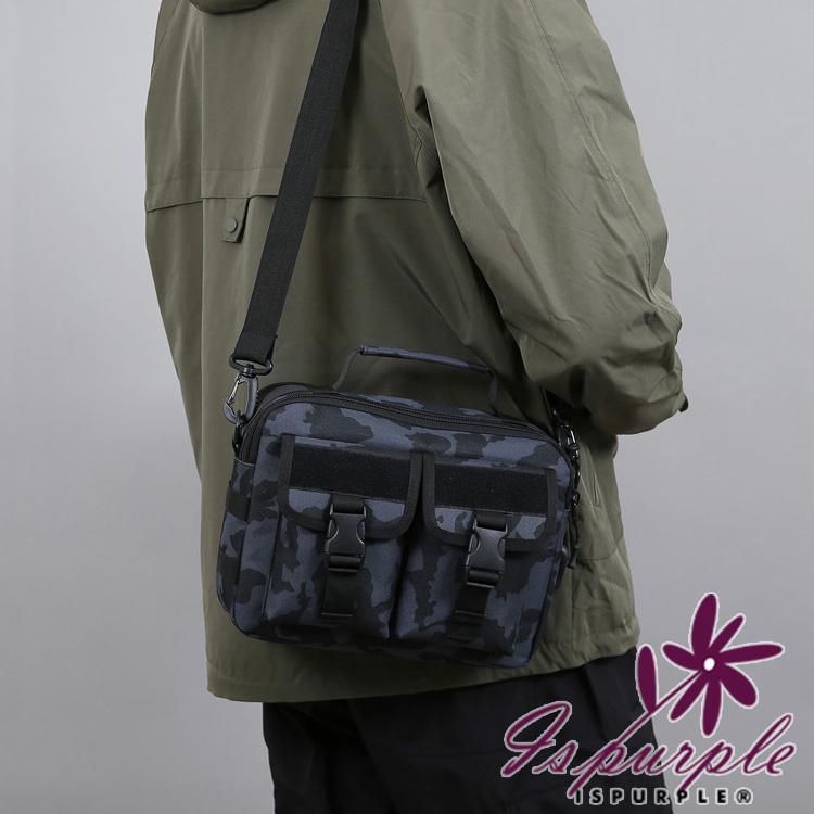 【iSPurple】時尚牛津 中性大容量多功能斜垮單肩包/灰色迷彩