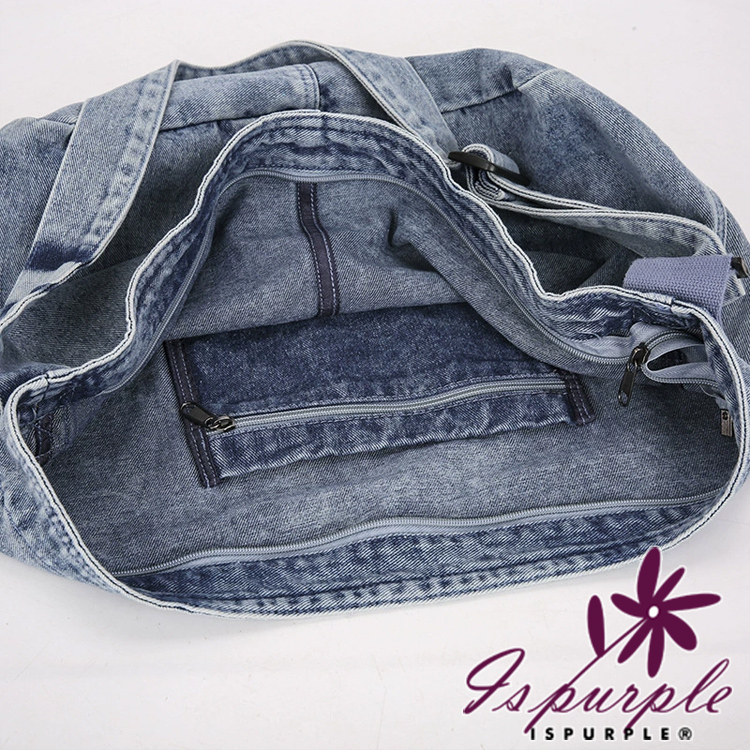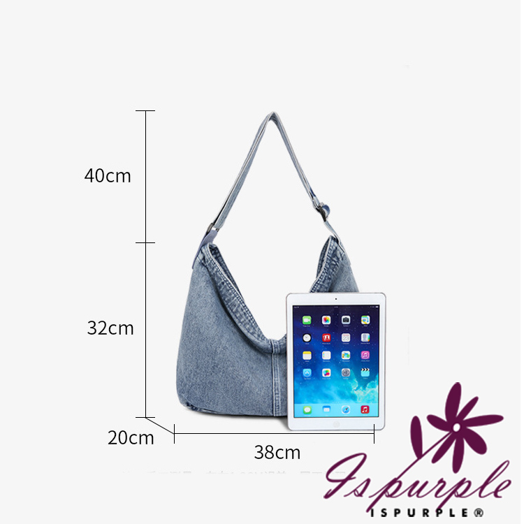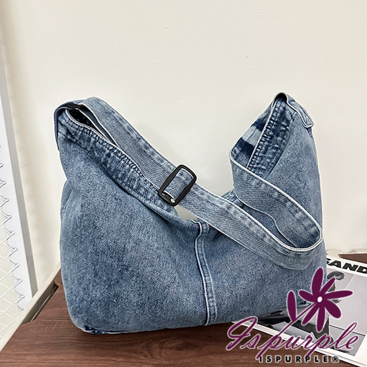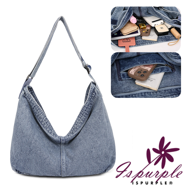 【iSPurple】復古水洗 帆布牛仔寬肩帶大容量肩背包/藍色
