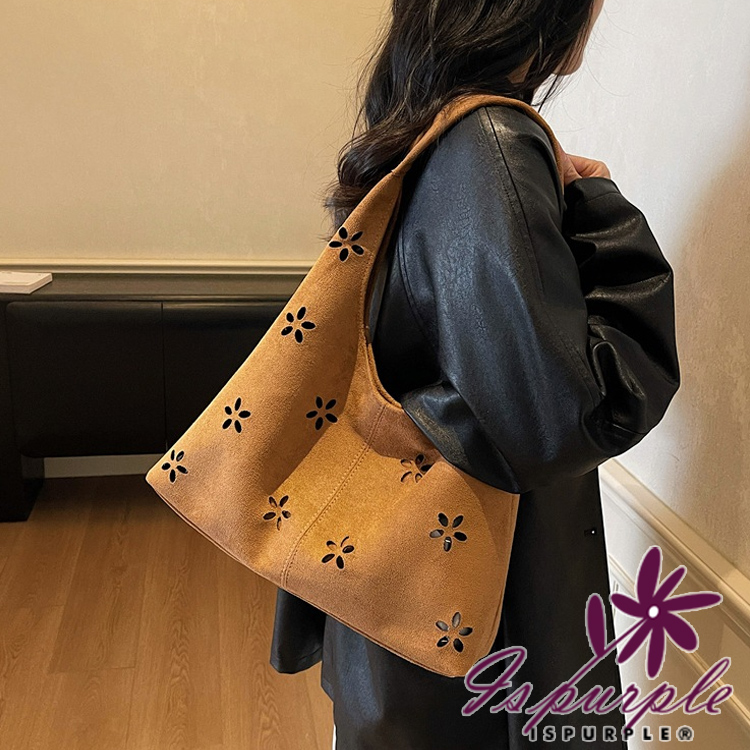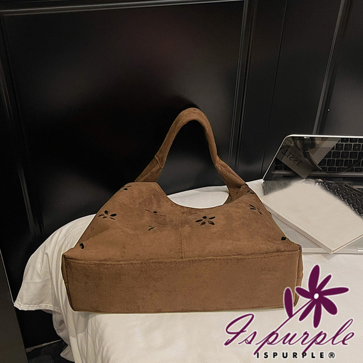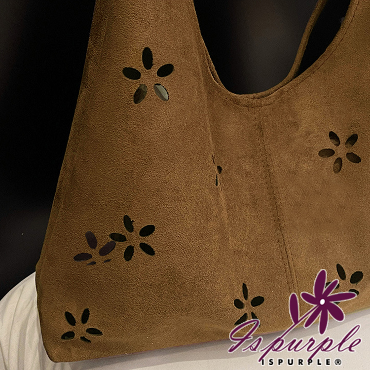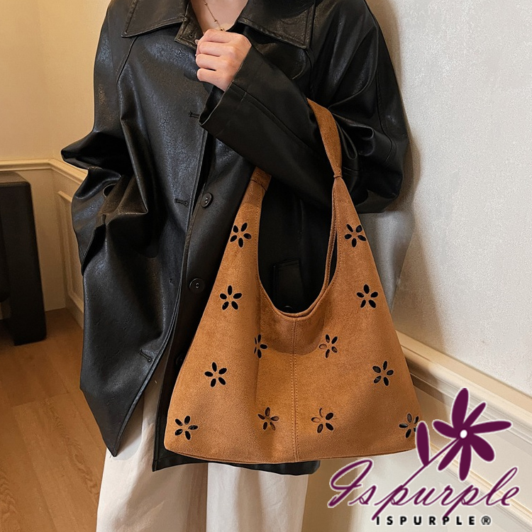 【iSPurple】鏤空花瓣 復古麂皮絨腋下包(內附小包)/棕色