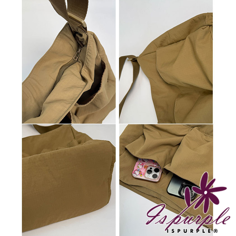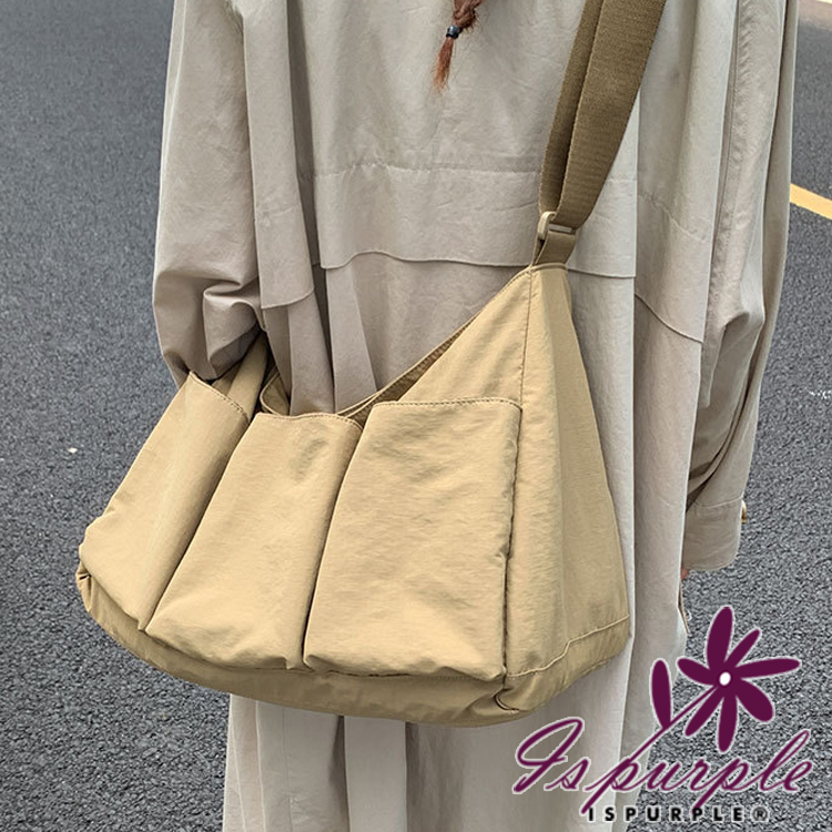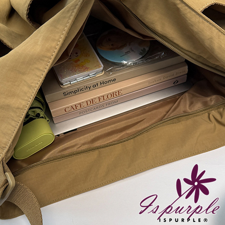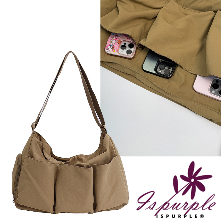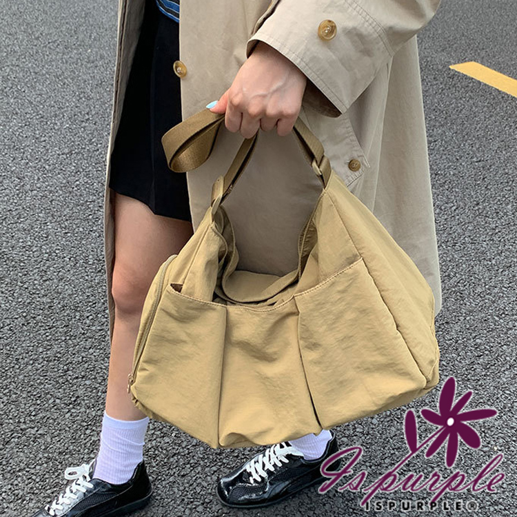 【iSPurple】輕巧百搭 多口袋獨立鞋倉尼龍托特包/卡其