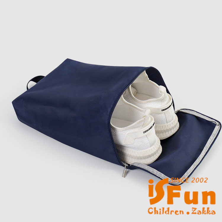 【iSFun】三角收納 可掛防潑水旅行外出鞋袋/藏青