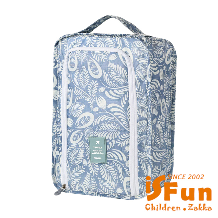 【iSFun】輕巧摺疊 迷你防水尼龍鞋袋/藍葉子