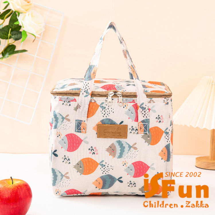 【iSFun】繽紛印花 大容量方型手提保冷保溫便當包/彩色小魚
