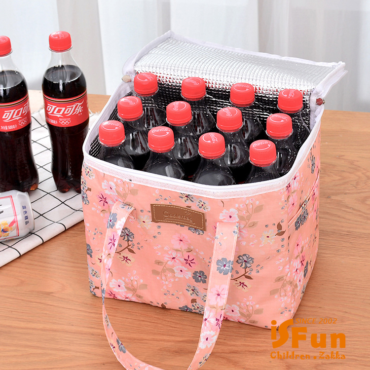 繽紛印花大容量方型保溫保冷包,簡單手提帶著走!