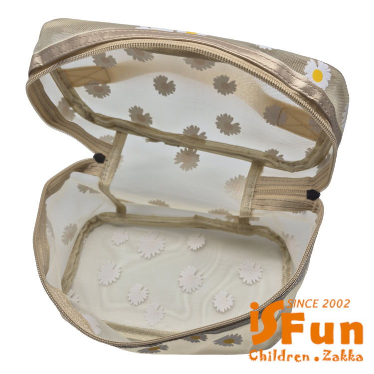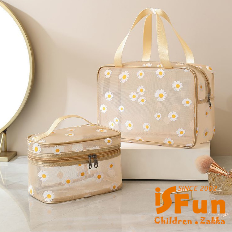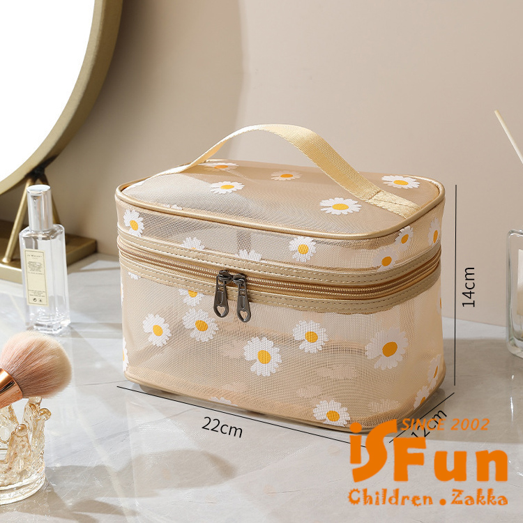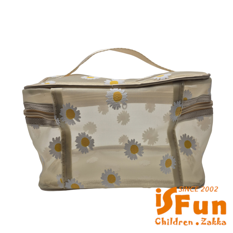 【iSFun】網紗透視 大容量多功能雛菊收納方包/米黃