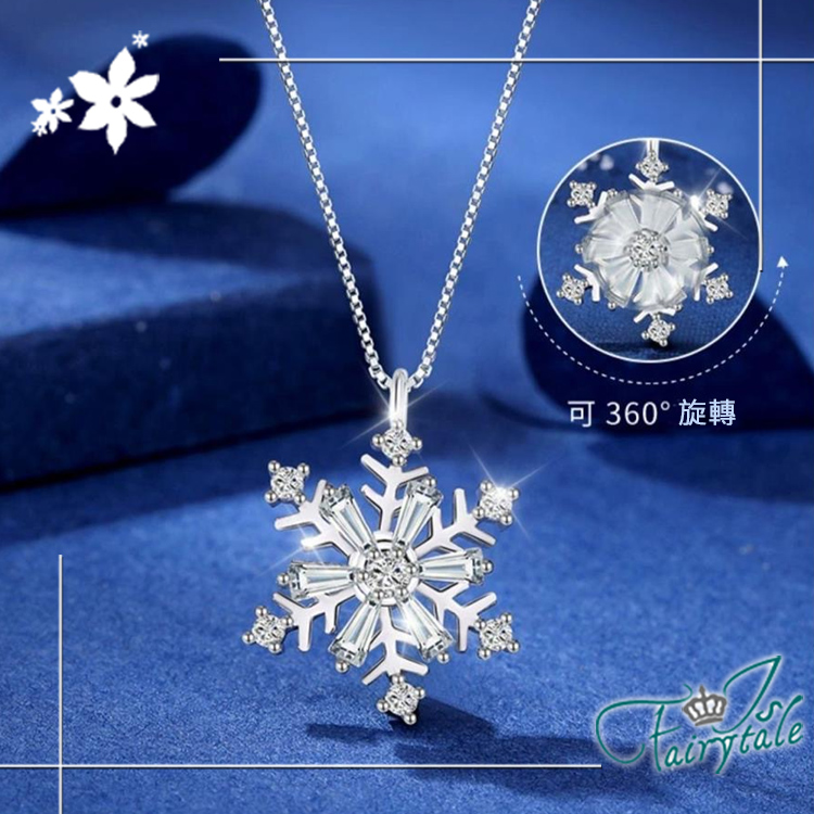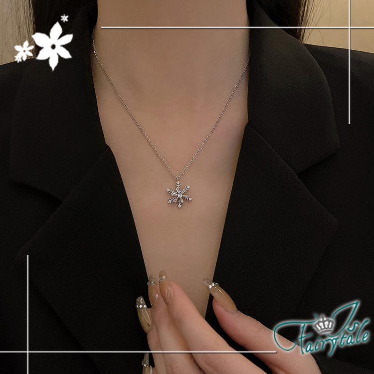 【伊飾童話】晶亮雪花 韓風鋯石可旋轉鎖骨項鍊/銀