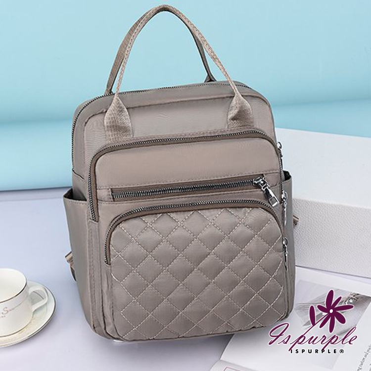 【iSPurple】方型菱格*防潑水尼龍雙肩後背包/紫