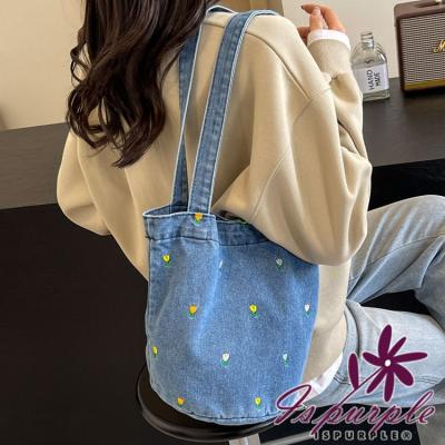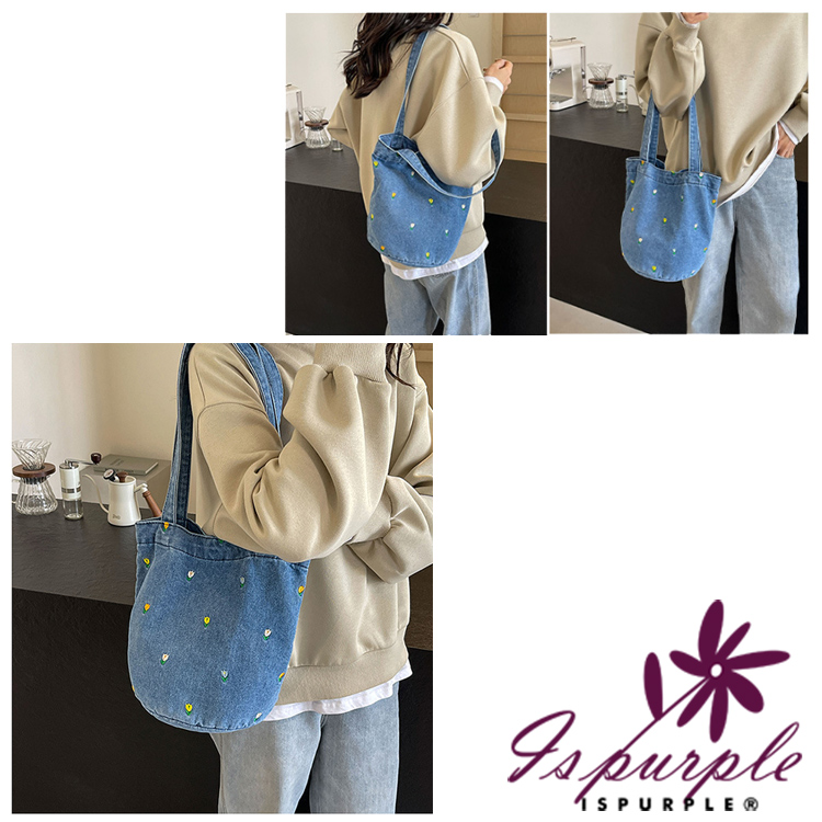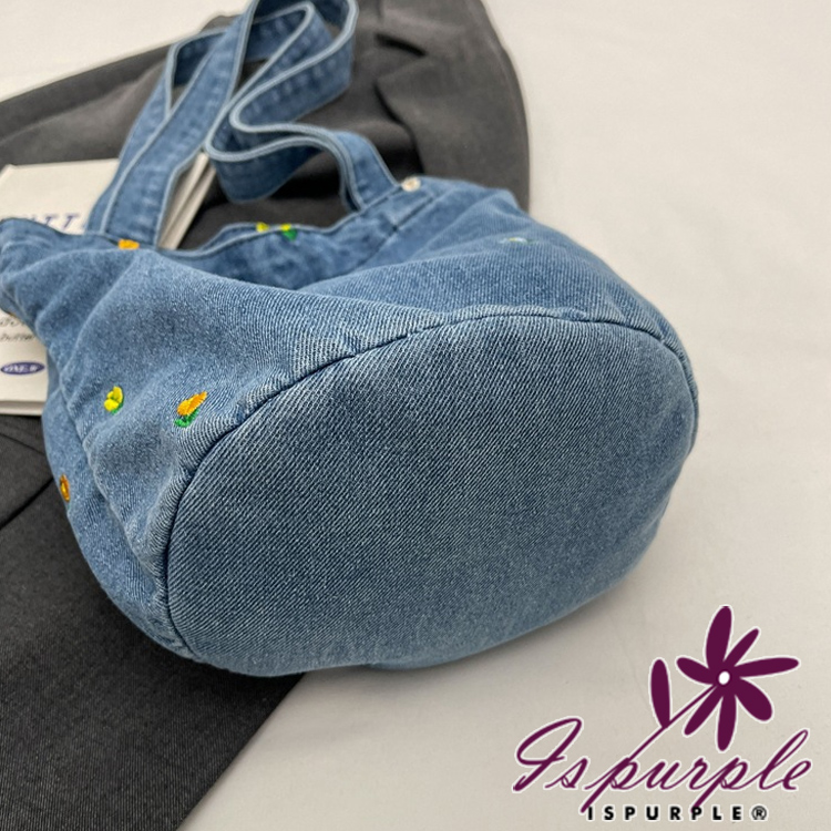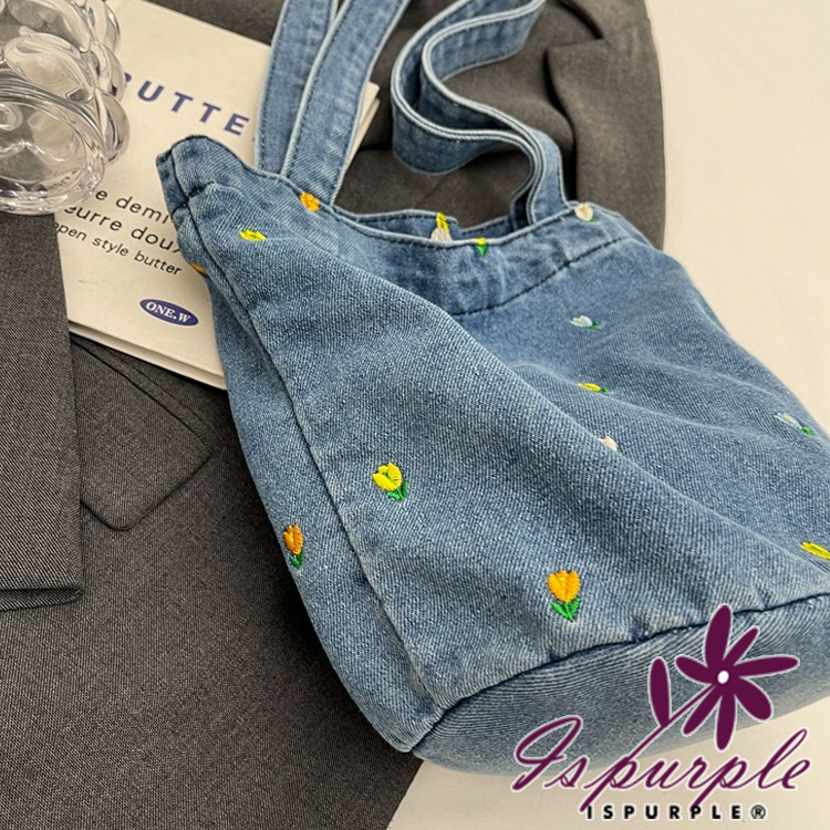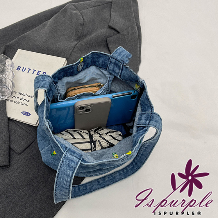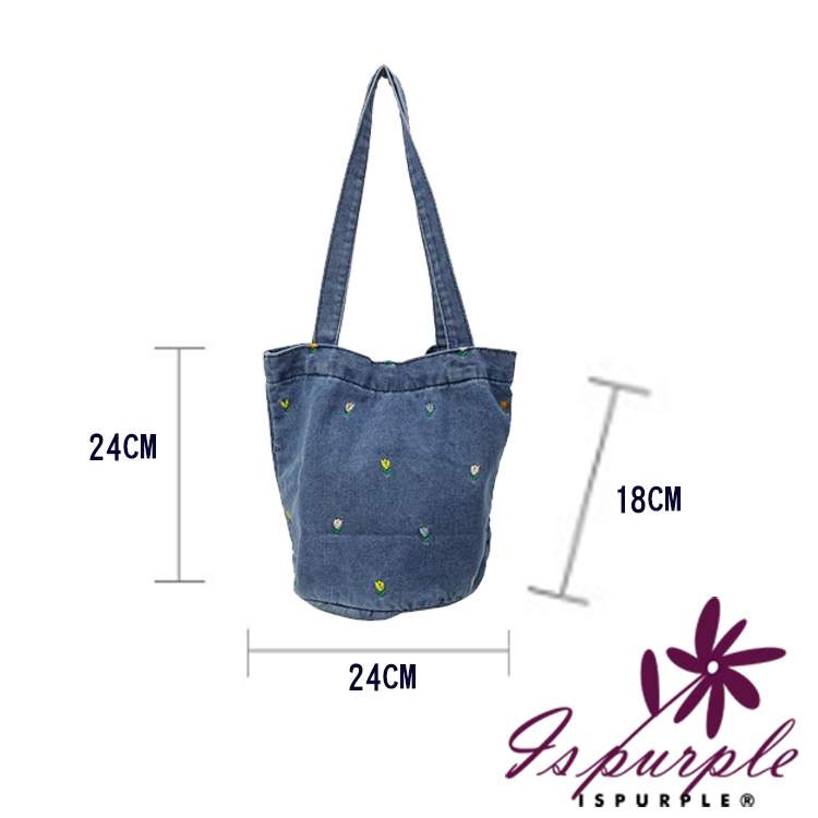【iSPurple】韓風碎花 大容量牛仔布肩背水桶包/淺藍