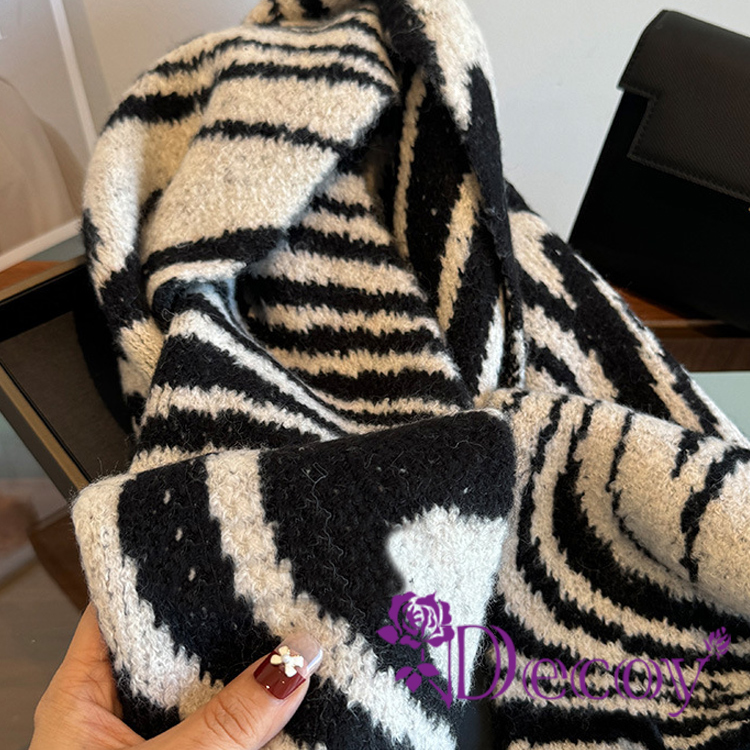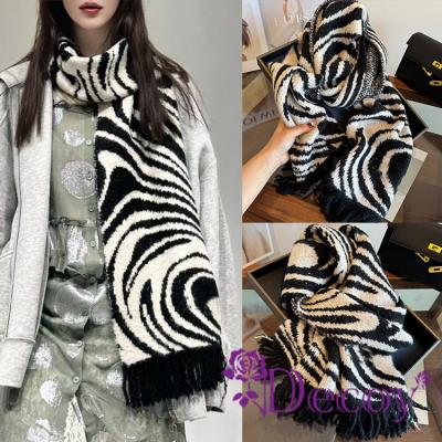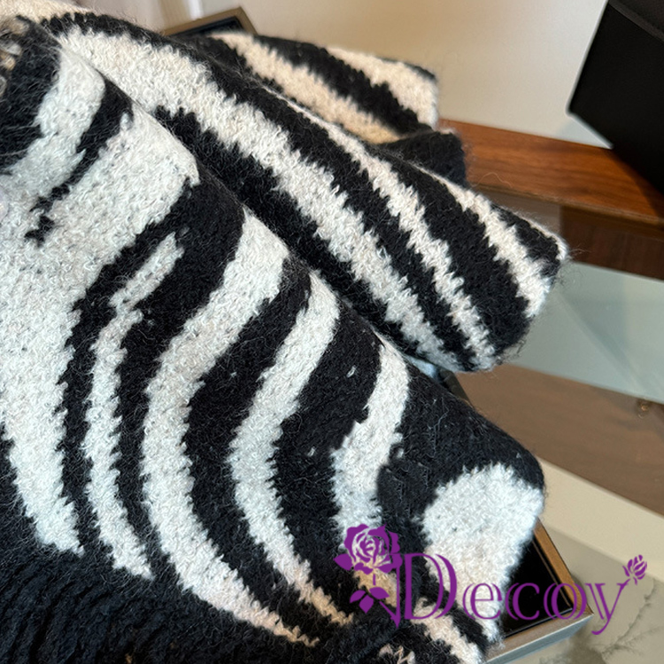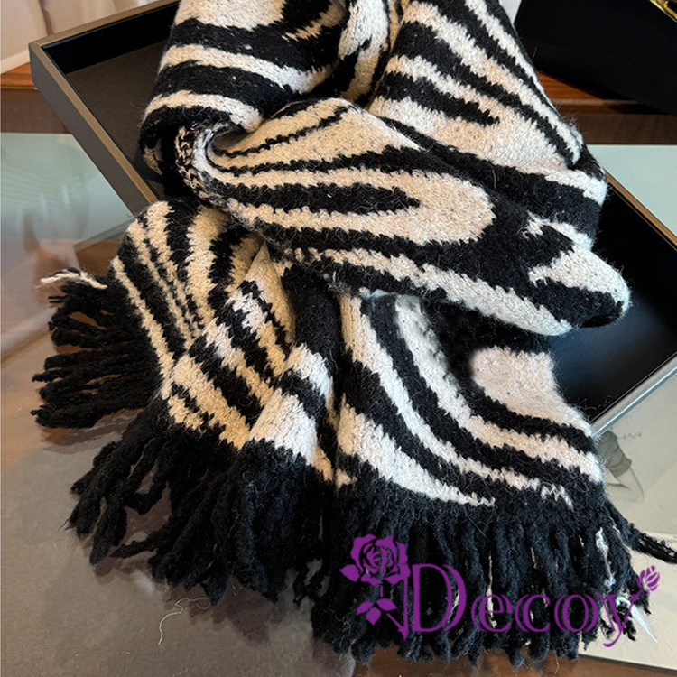 【Decoy】斑馬線條 時尚流蘇仿羊絨保暖披肩圍巾