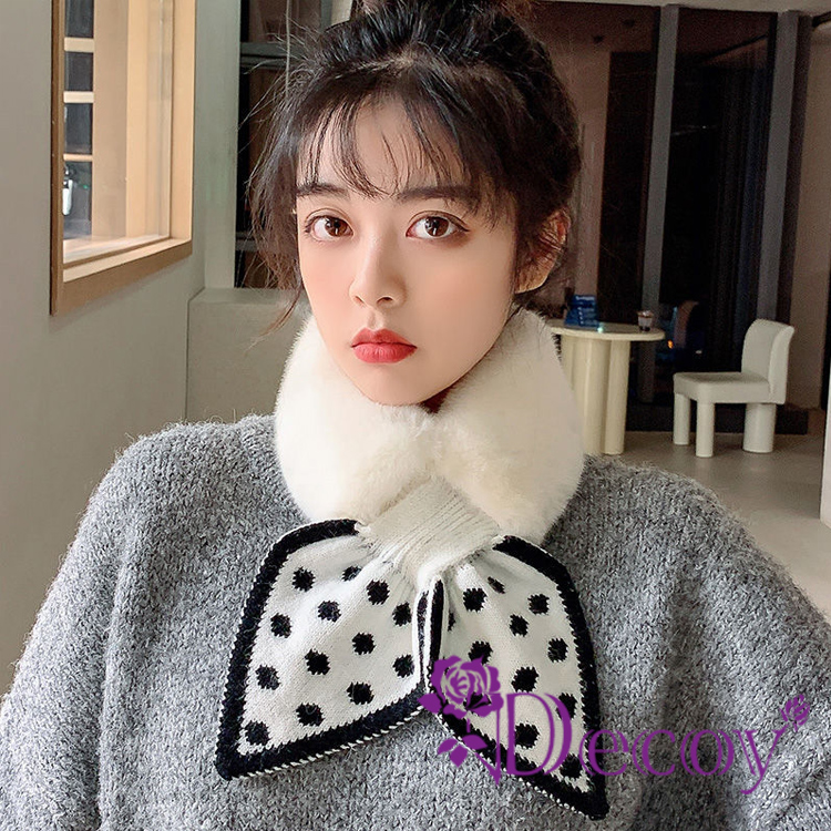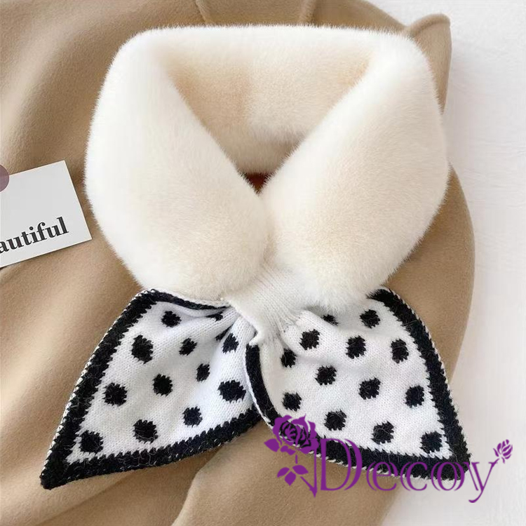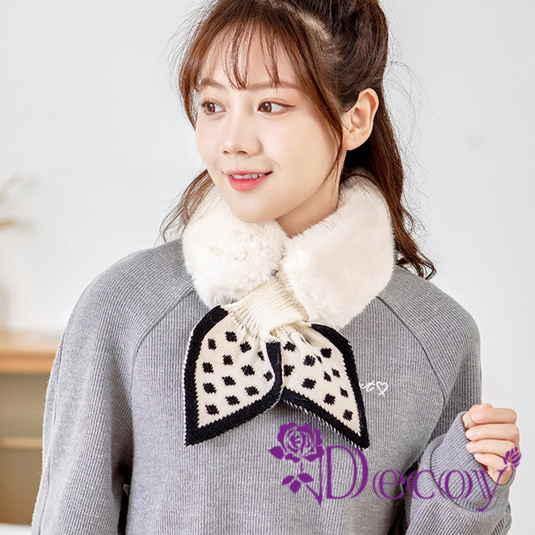 【Decoy】點點兔耳 保暖仿兔毛交叉脖圍圍巾/白