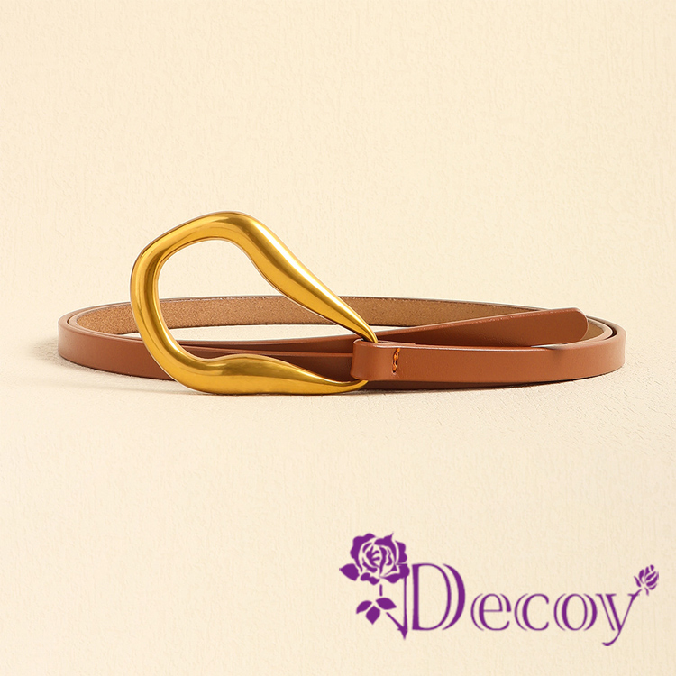 【Decoy】不規則時尚 大氣無孔綁式真皮細皮帶/駝色