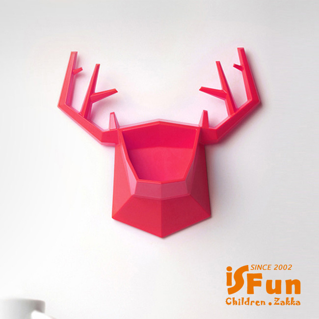 【iSFun】創意鹿角*壁貼式置物收納盒/紅