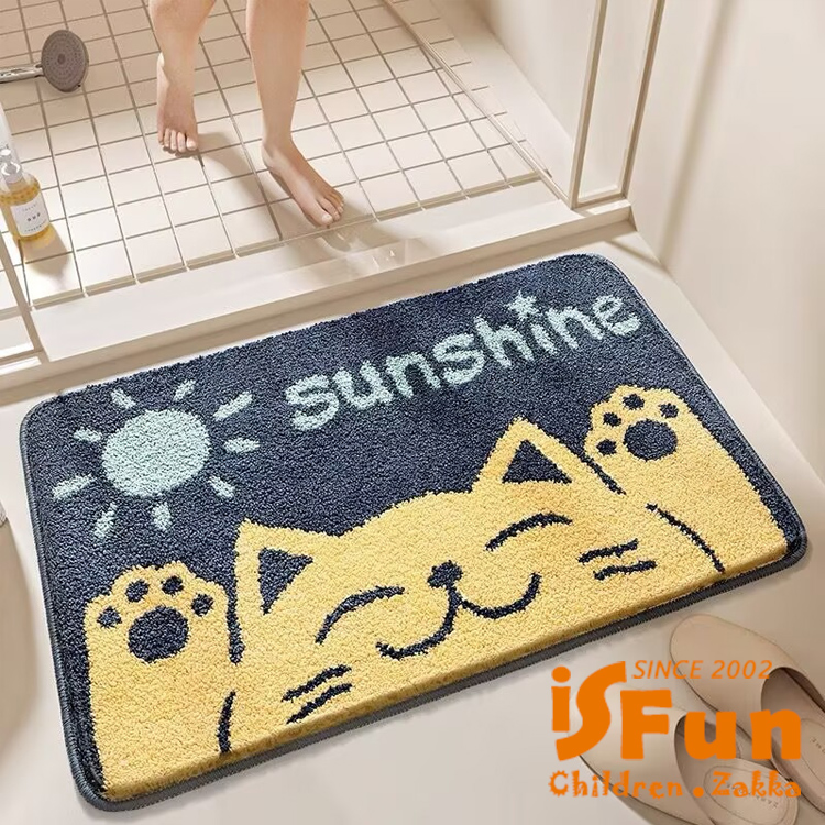 【iSFun】羊羔絨毛 腳踏防滑浴室吸水地墊50x80cm/陽光貓咪