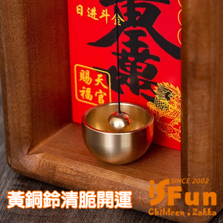 【iSFun】旺宅佈置 貼式磁吸兩用黃銅招財門鈴/八方來財
