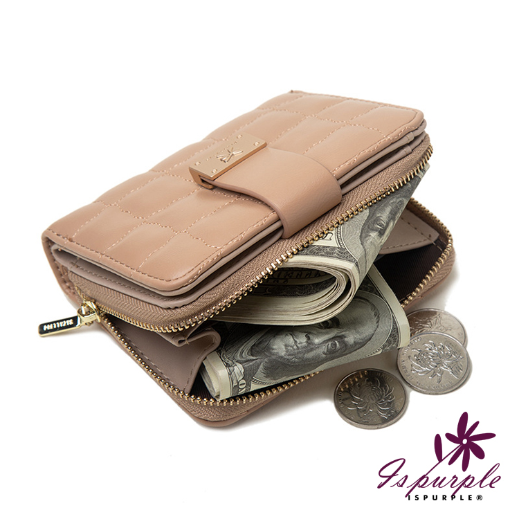 【iSPurple】方型格紋*韓風皮革零錢短夾/橄欖綠