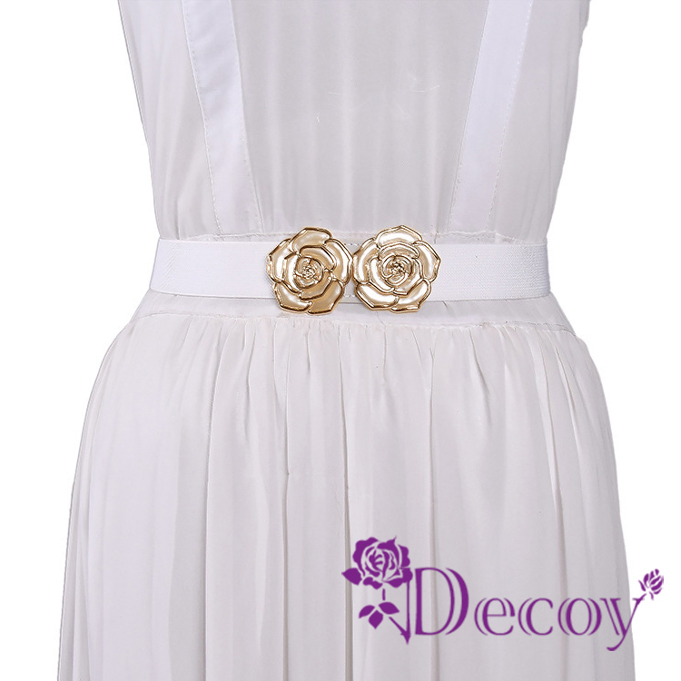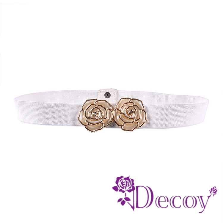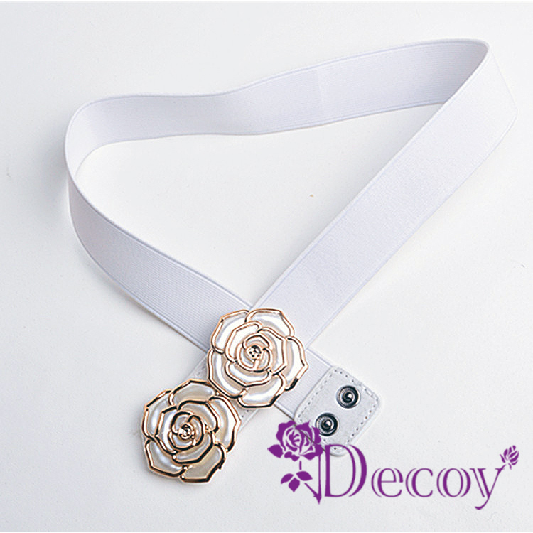 【Decoy】雕刻玫瑰 彈性伸縮修身腰封/白