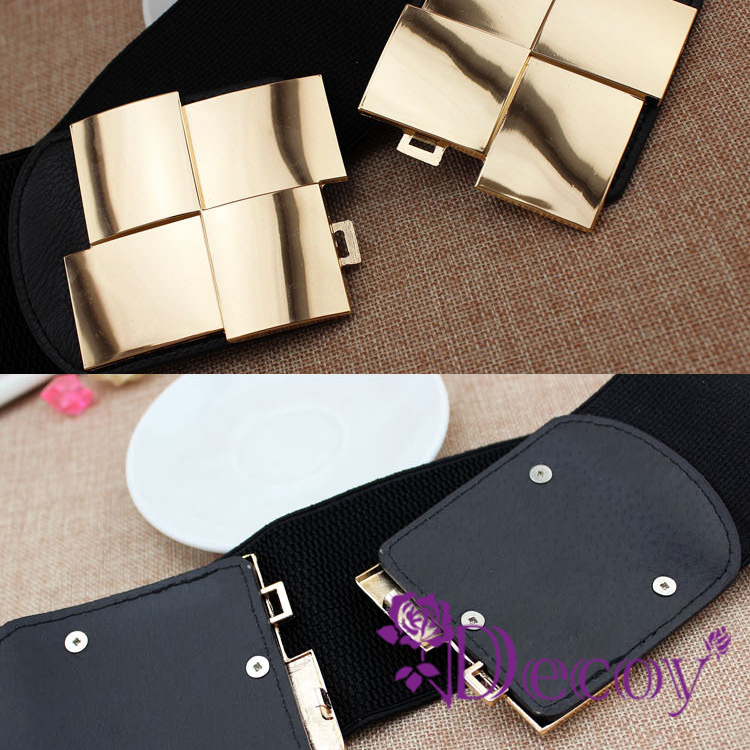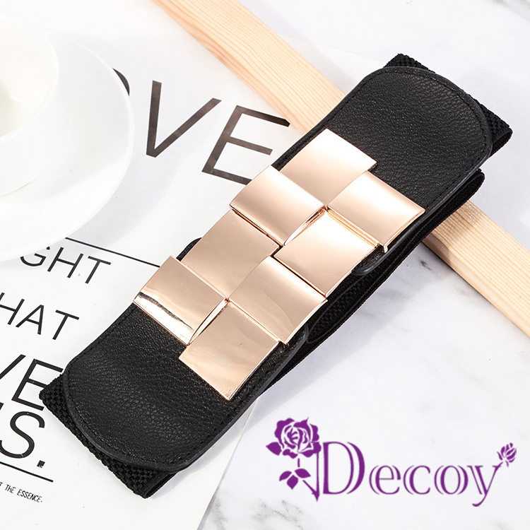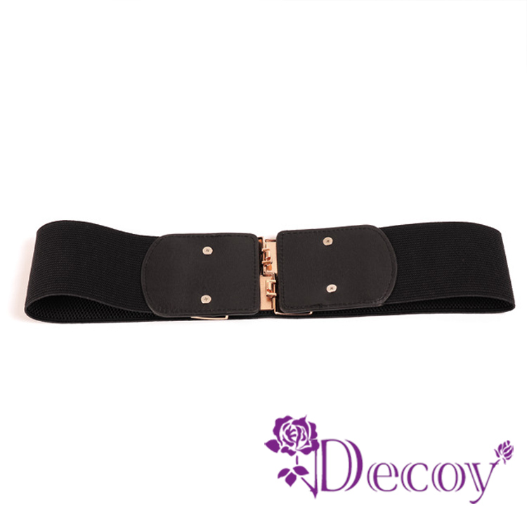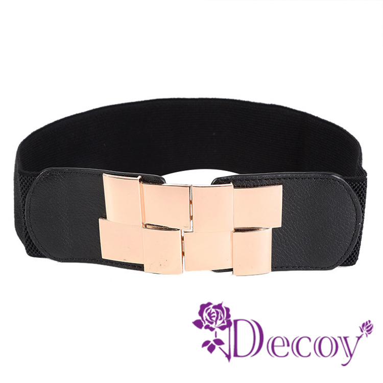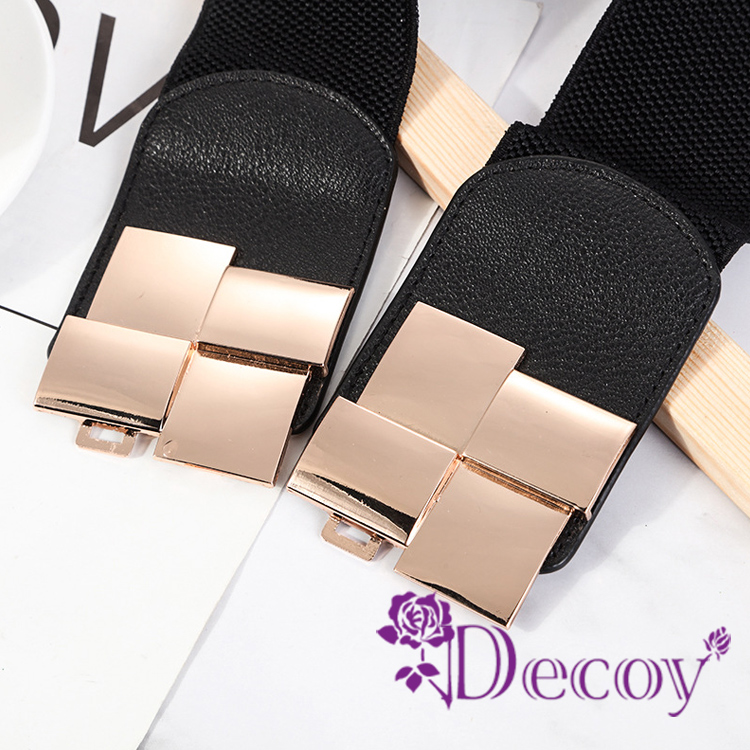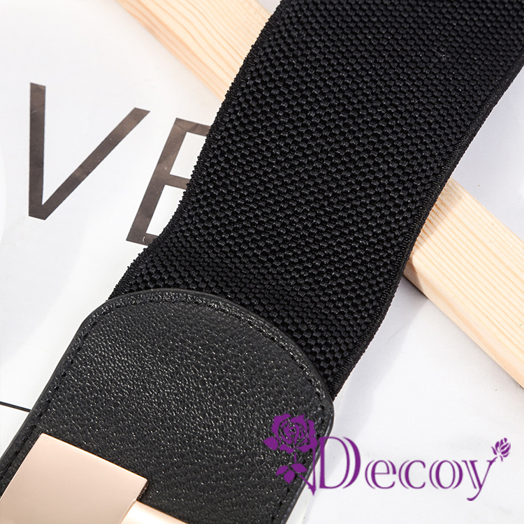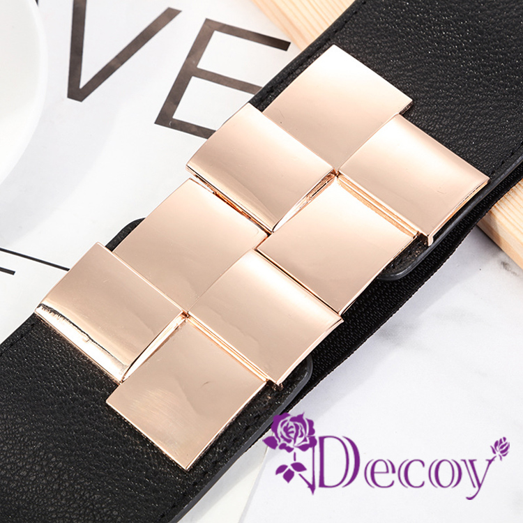 【Decoy】交錯方格 彈性寬版皮革腰封/黑