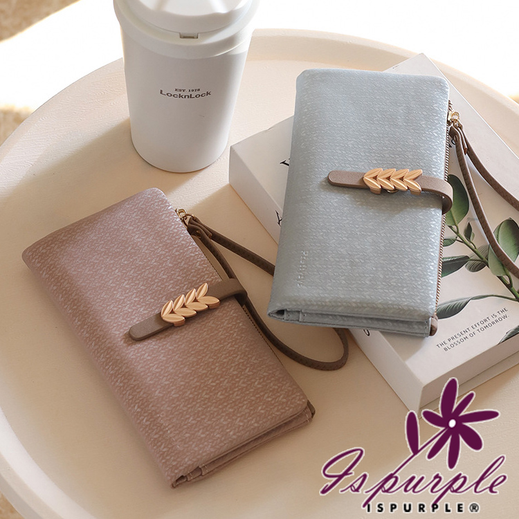 【iSPurple】桂冠金葉 輕軟壓花紋皮革零錢長夾/藍