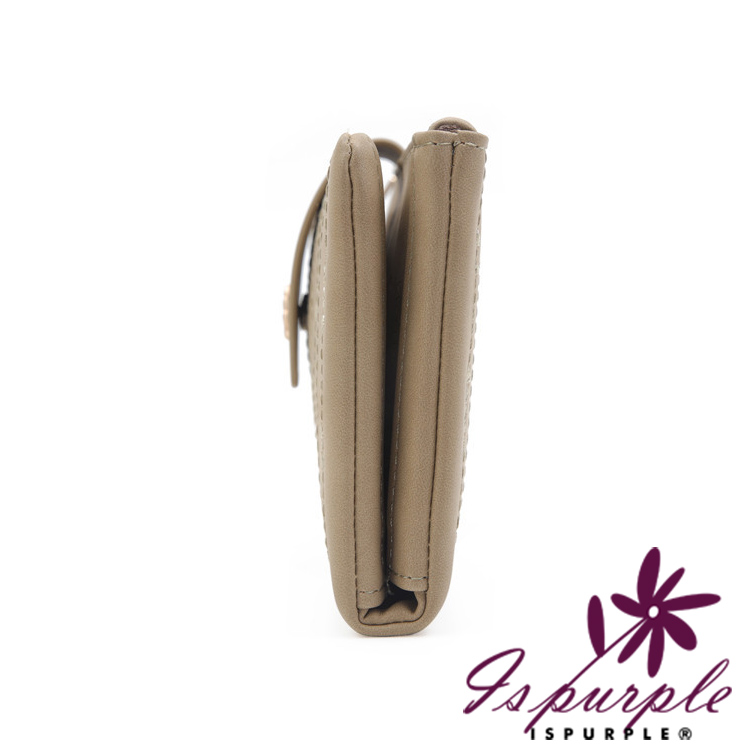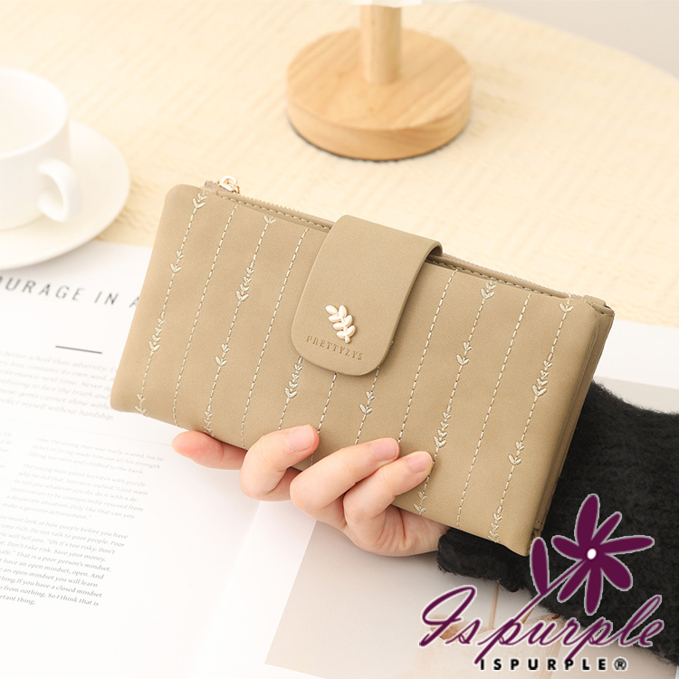 【iSPurple】金葉點綴 輕巧軟皮革二折刺繡長夾/粉色