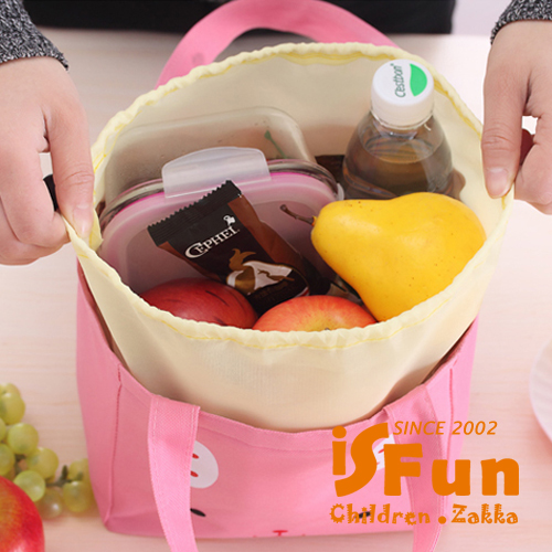 【iSFun】動物笑臉*保溫束口便當袋/黃