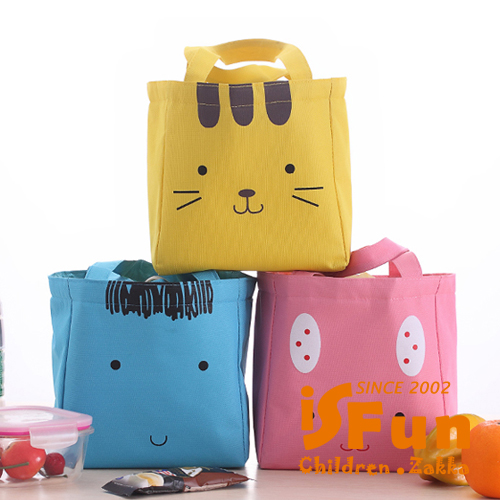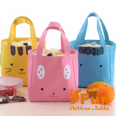 【iSFun】動物笑臉*保溫束口便當袋/粉