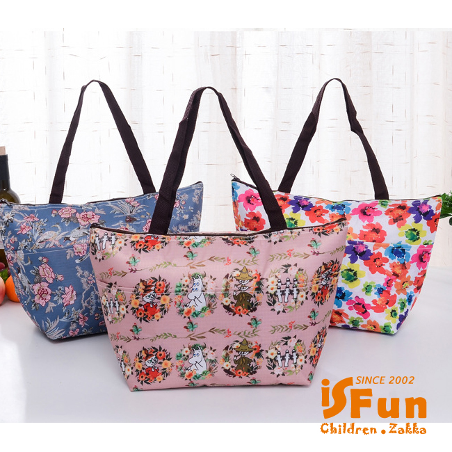 【iSFun】大容量肩背*保溫保冷便當袋/深藍花語