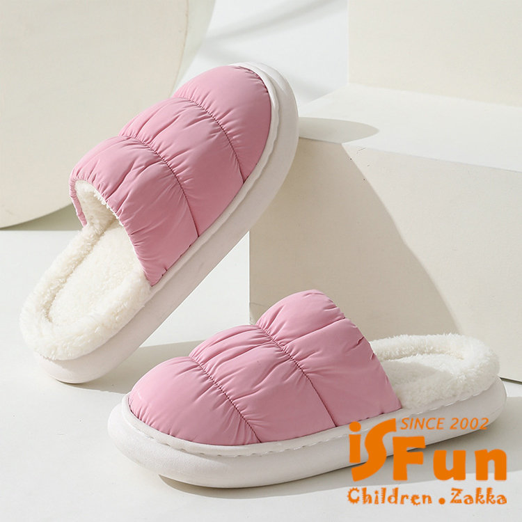【iSFun】輕巧雲朵 防水羽絨保暖室內拖鞋/粉/3839號