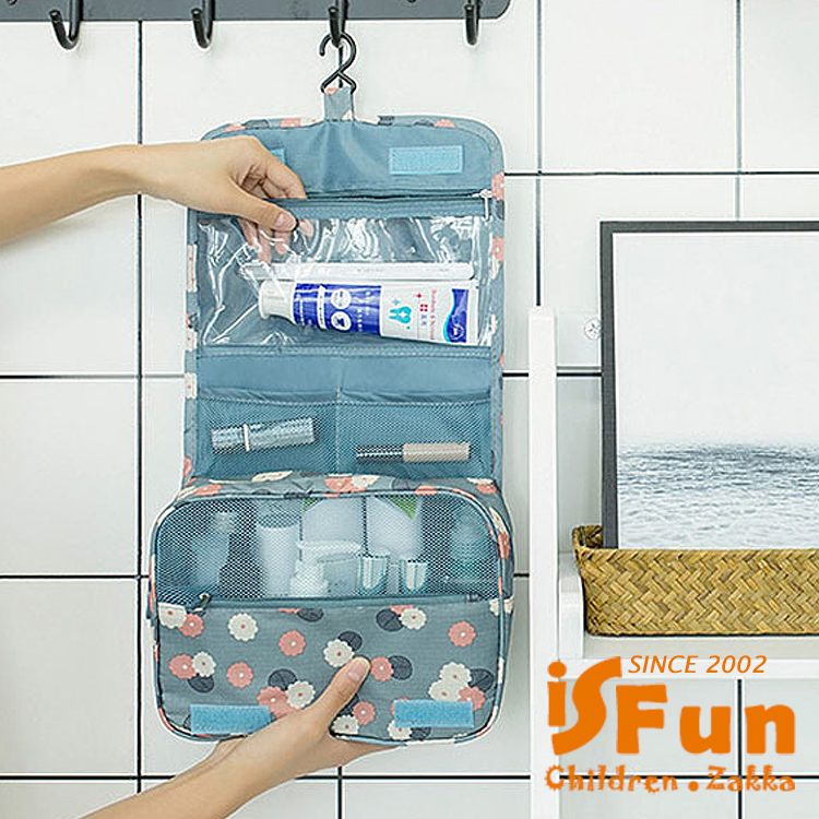 【iSFun】旅行專用*可掛多分隔盥洗包/日系藍紋