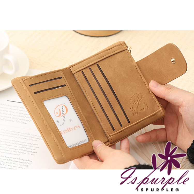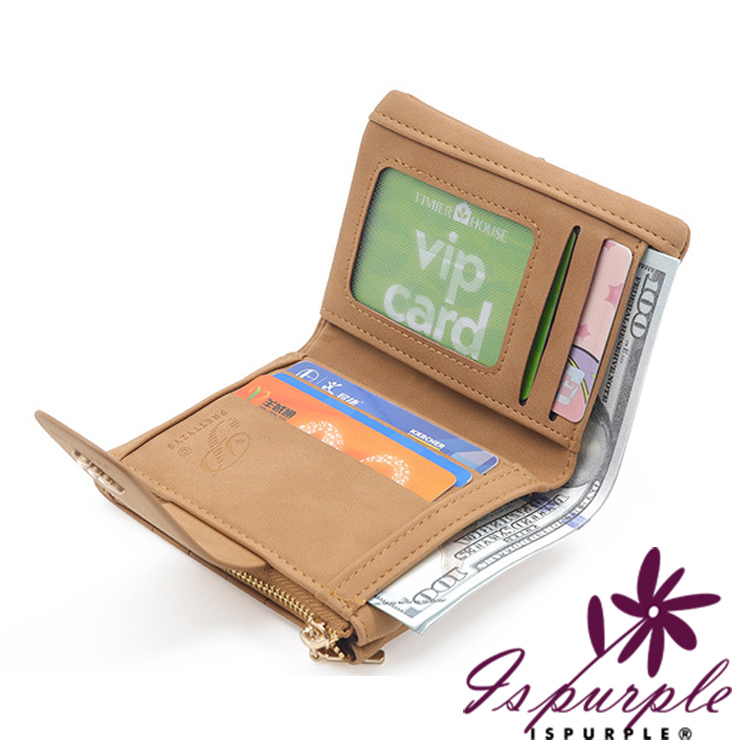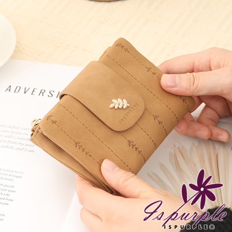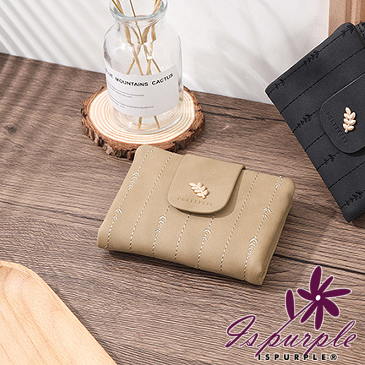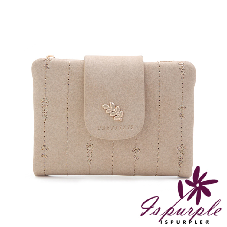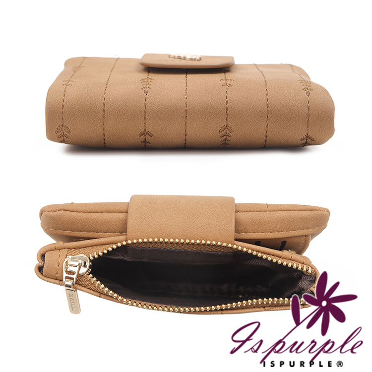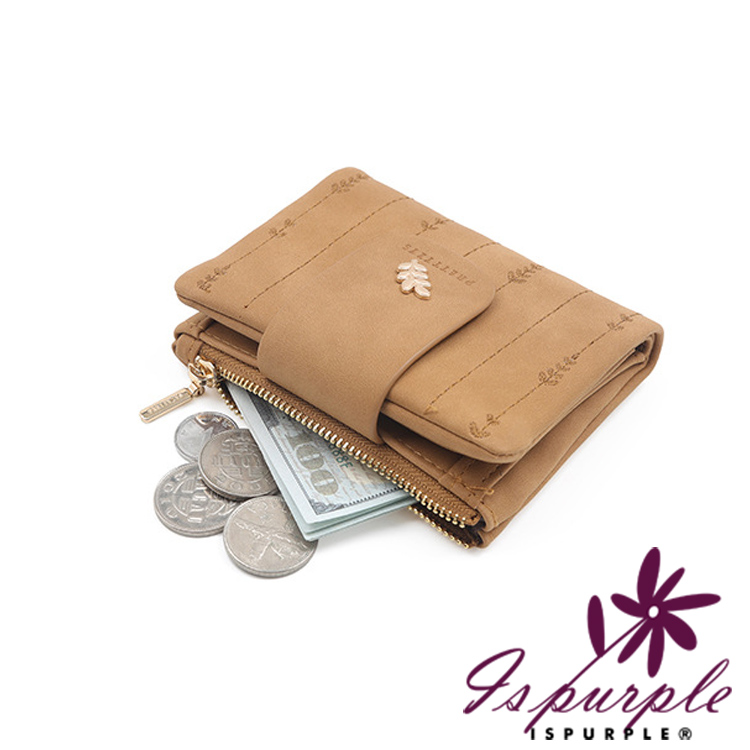 【iSPurple】金葉點綴 輕巧軟皮革刺繡零錢短夾/杏色