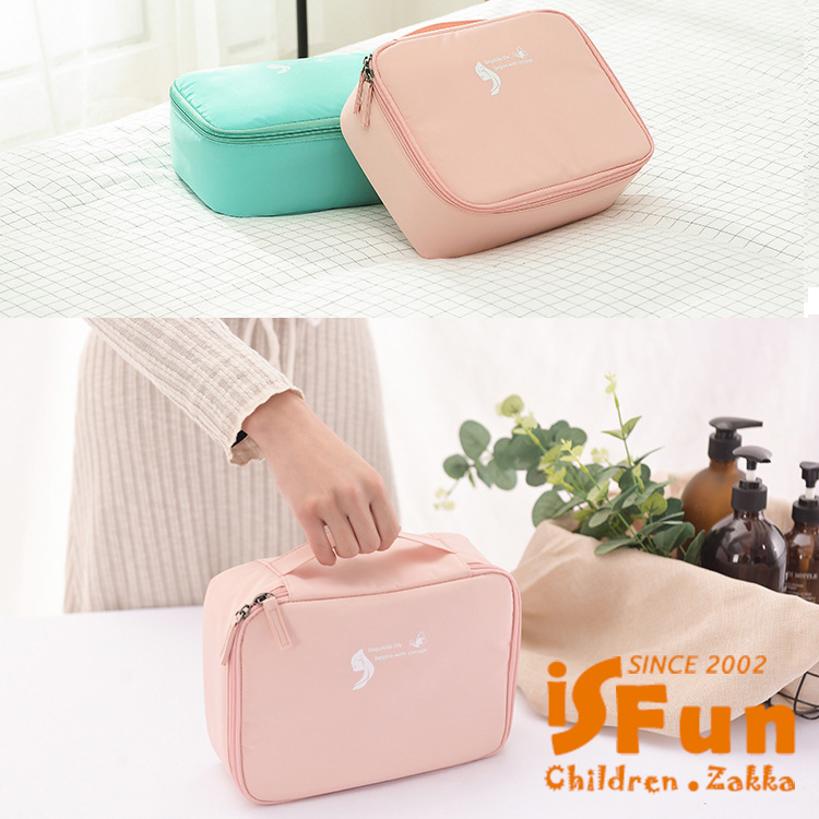 【iSFun】手提便攜 防水防撞多功能四方盥洗包/藍