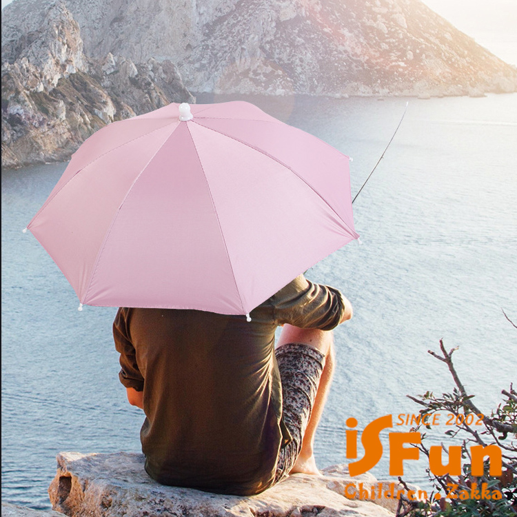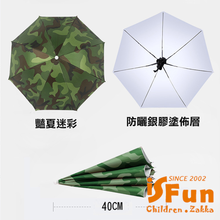 【iSFun】夏季迷彩 釣魚外出頭戴式遮陽雨傘帽/彩色