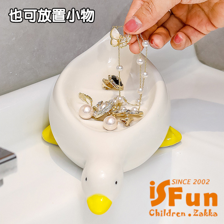 【iSFun】陶瓷收納 免打孔鴨鴨瀝水肥皂盒