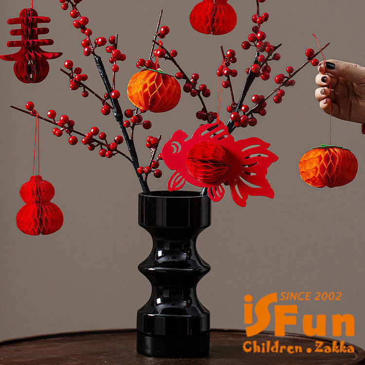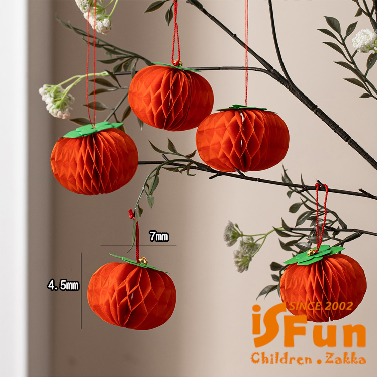 【iSFun】迎春佈置 盆景裝飾蜂窩球小掛飾5入/柿子