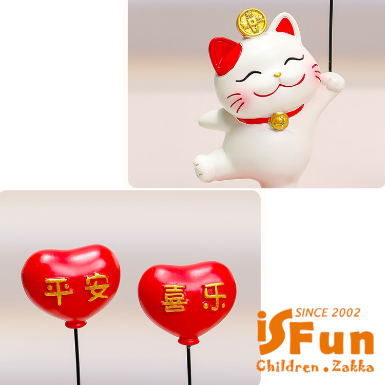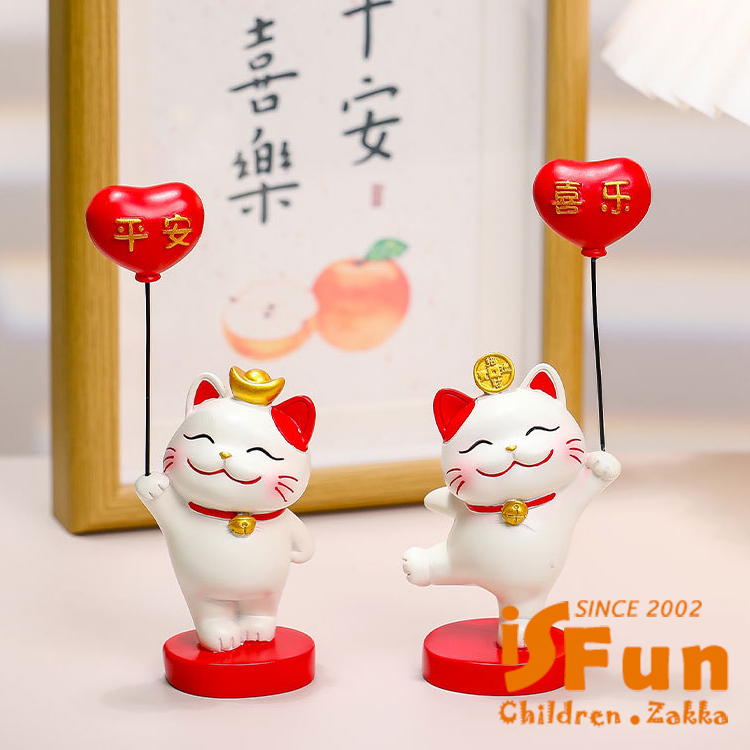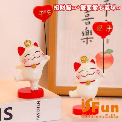 【iSFun】招財貓 可拆雙面氣球公仔擺飾/愛心(平安喜樂)