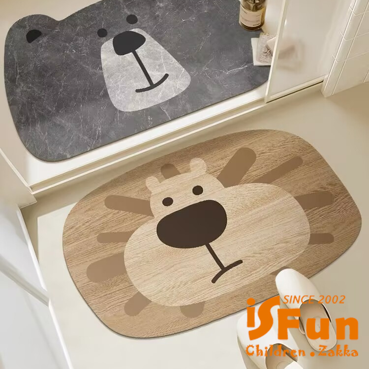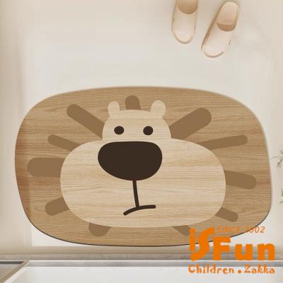 【iSFun】動物大臉 吸水珪藻土軟地墊50x80cm/木紋獅子