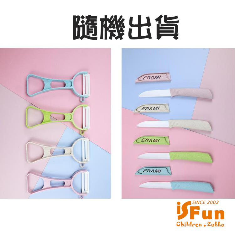 【iSFun】無毒陶瓷*麥纖維水果刀削皮砧板托盤四件組