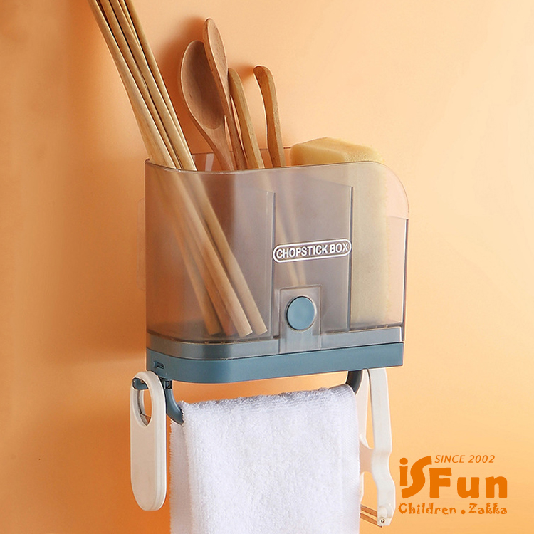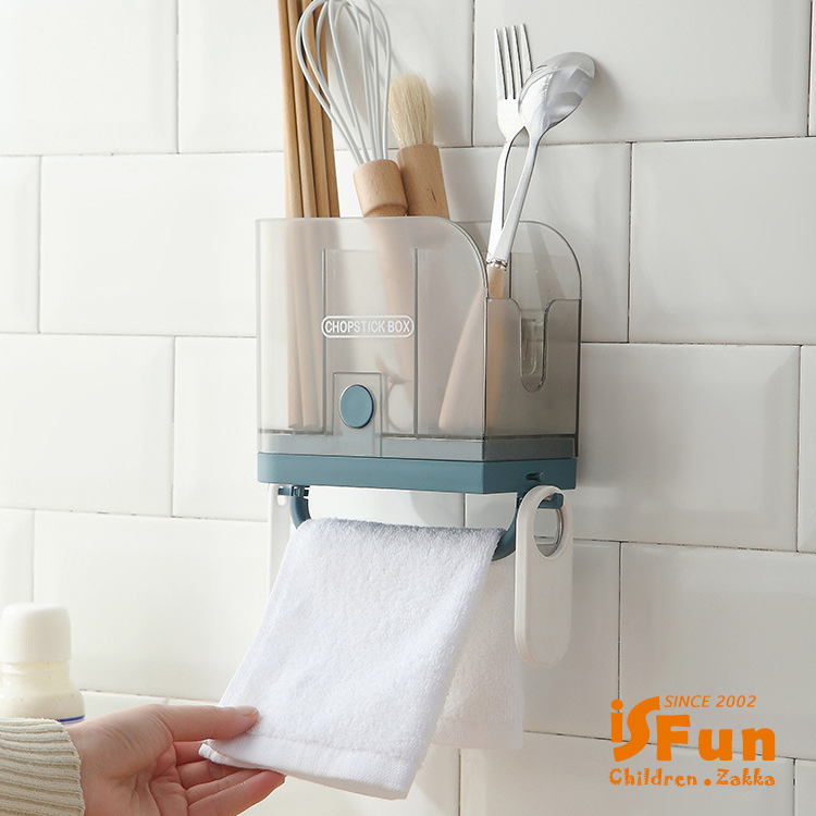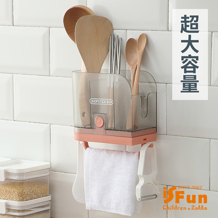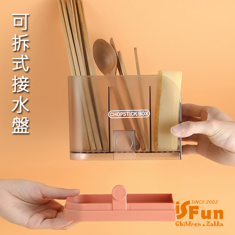 【iSFun】廚衛收納*三格瀝水無痕壁貼筷子餐具筒/紅