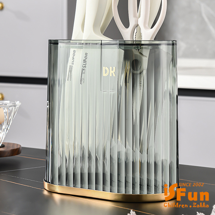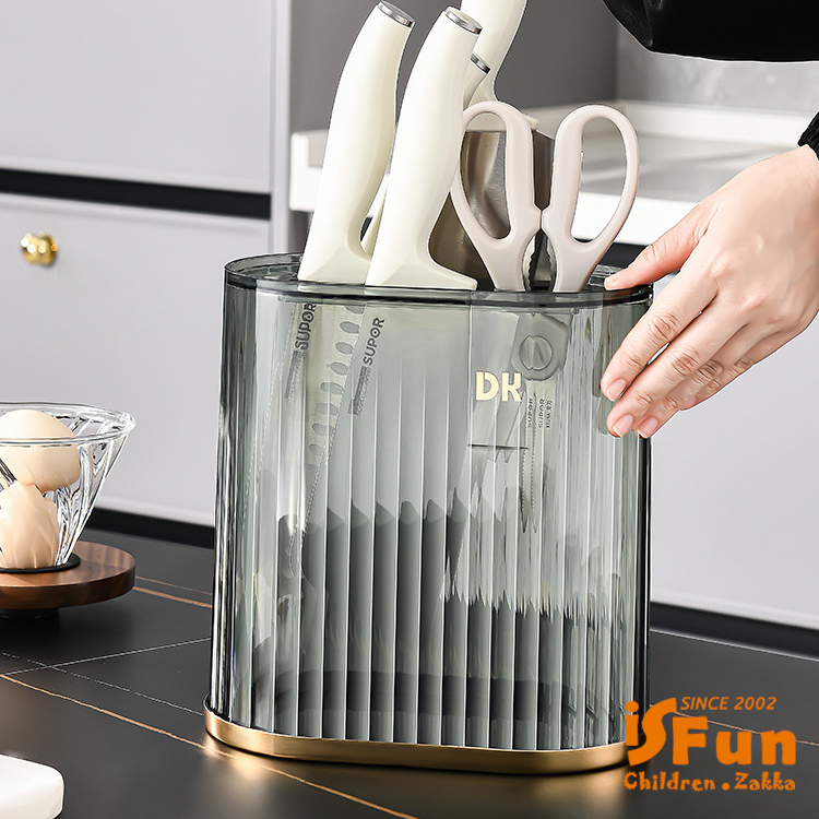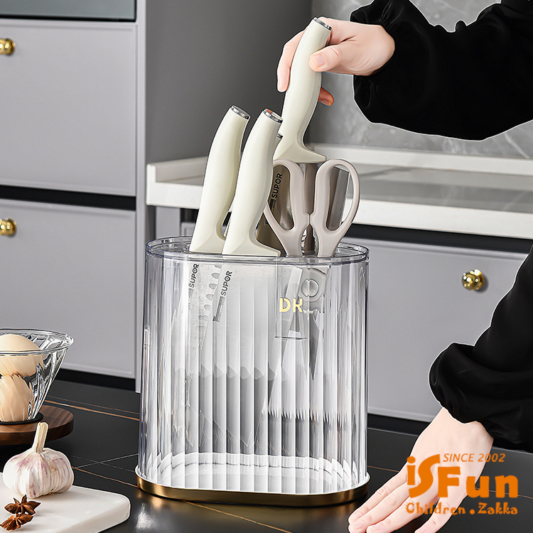 【iSFun】餐廚收納*輕奢歐風瀝水磨刀剪刀菜刀架/透明