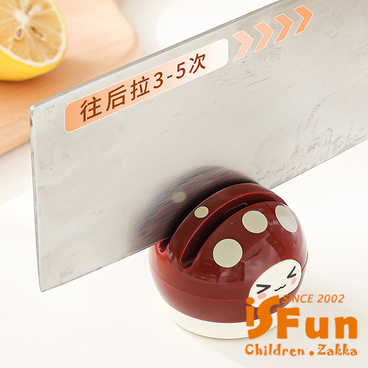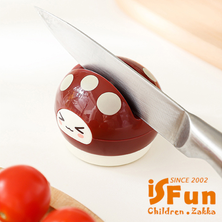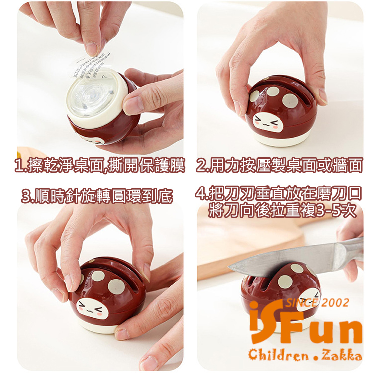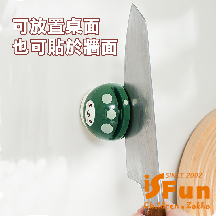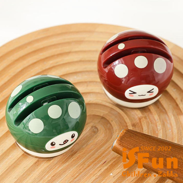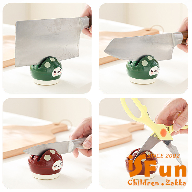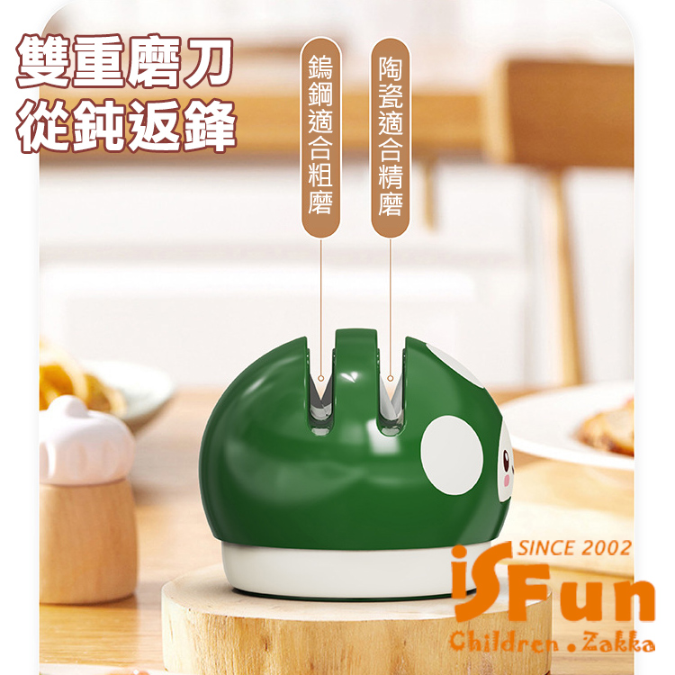【iSFun】萌臉香菇 創意吸盤雙V刀口磨刀器/綠色