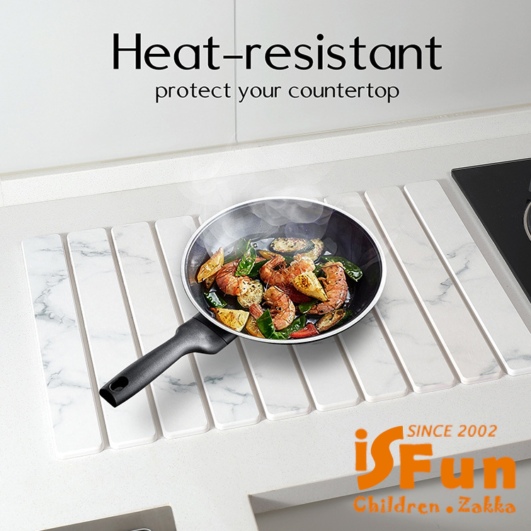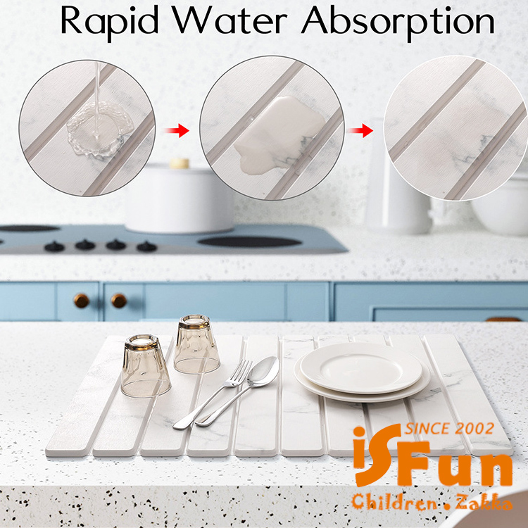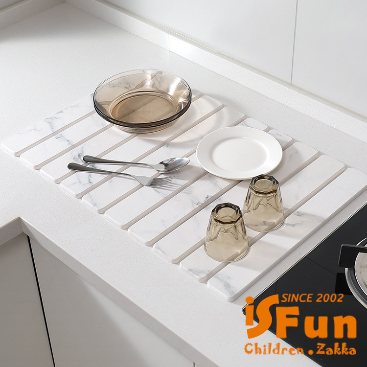 【iSFun】可折疊 多功能珪藻土吸水墊碗碟瀝水墊 60x39cm/大理石