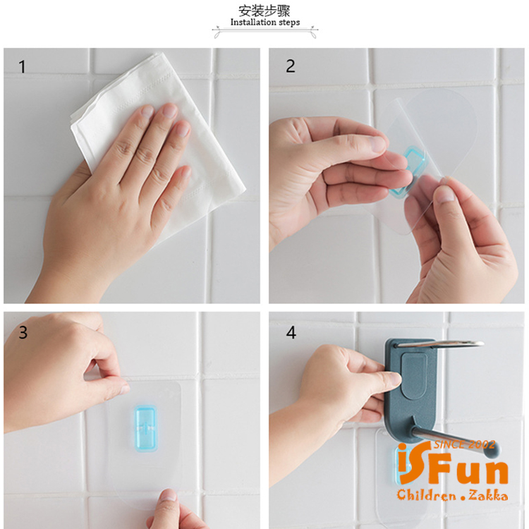 使用方式:將商品後方膠膜撕除(這邊請用點力),將商品貼至擦拭乾淨平滑的地方(例:玻璃、磁磚、大理石等),用力貼上黏貼,經過24小時後使用效果更佳