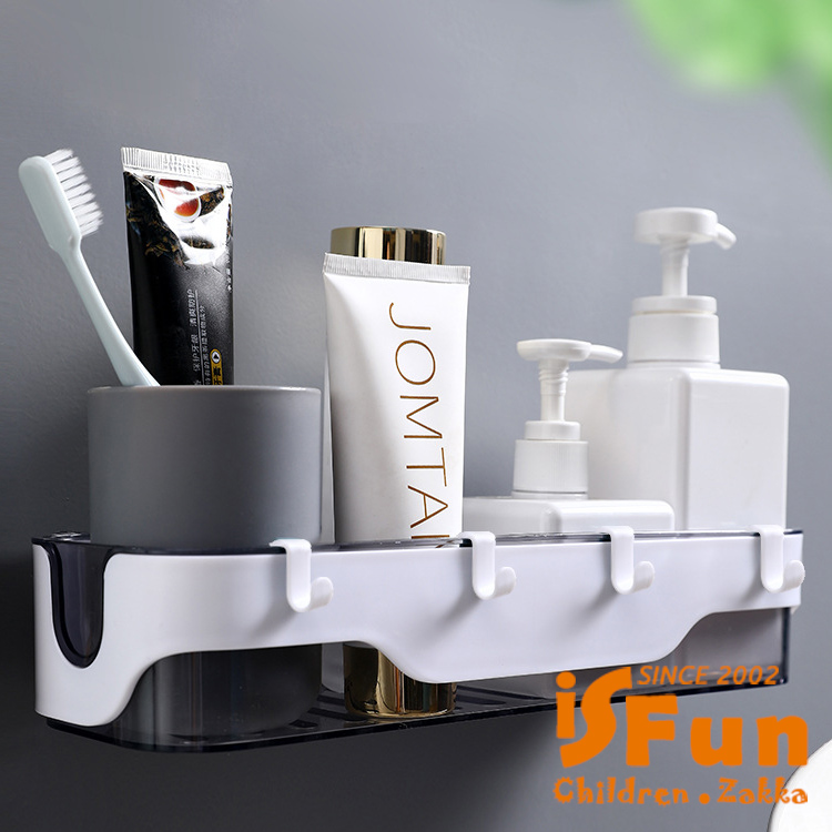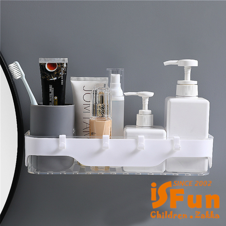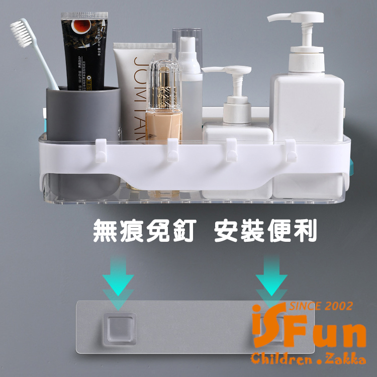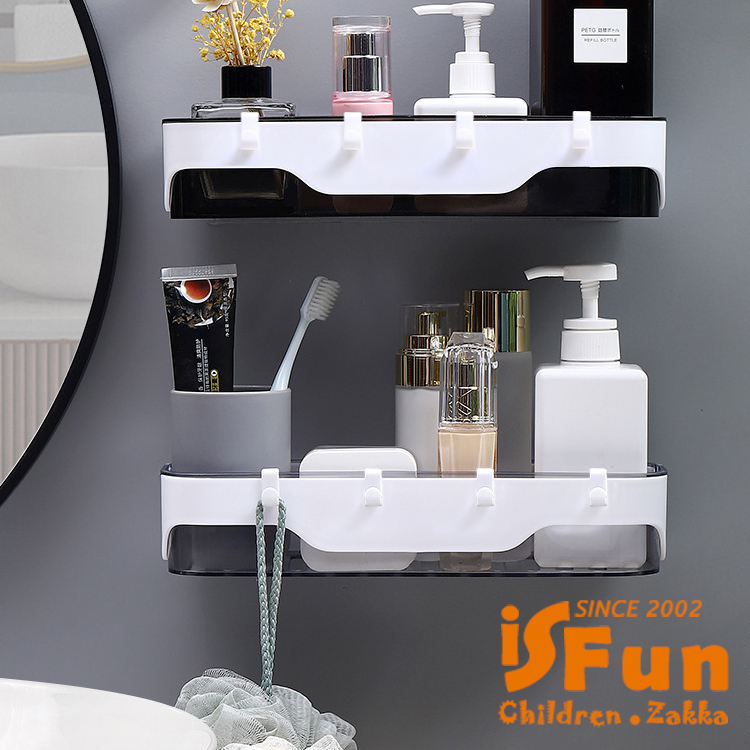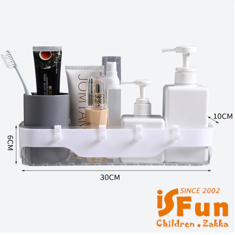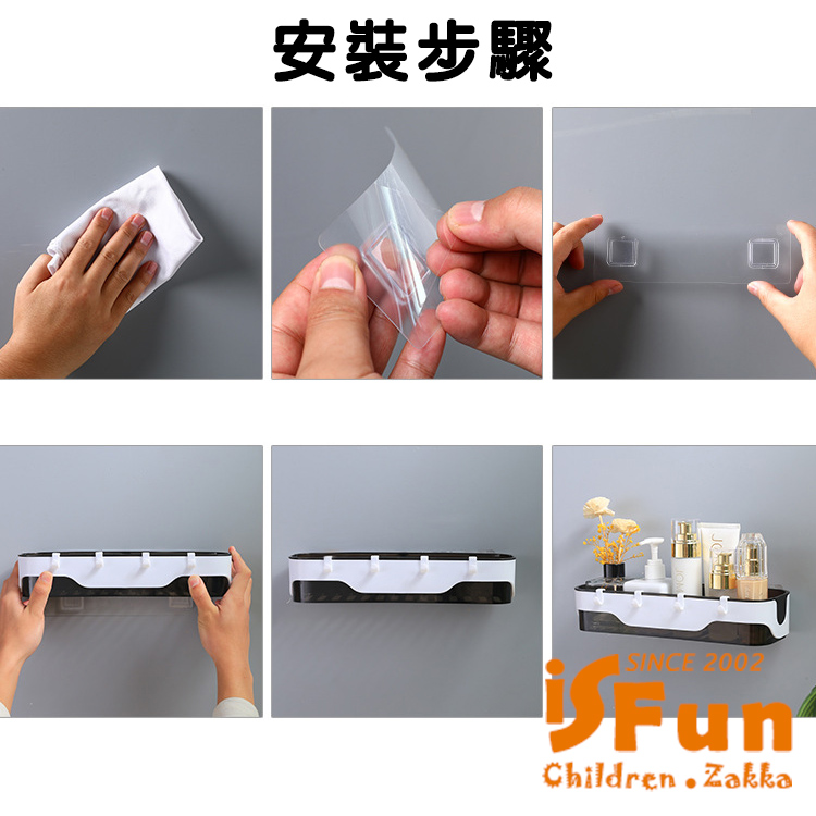 【iSFun】簡約收納 無痕壁掛式多功能置物架/灰