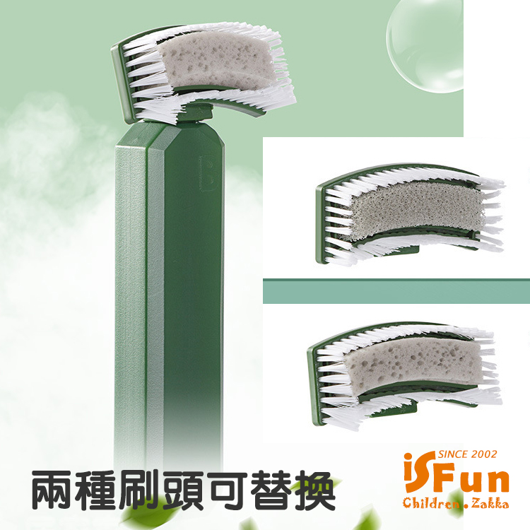 二種不同的刷頭,可隨意替換使用,也可使用在衛浴掃除上,長方型的刷頭設計清潔無死角。