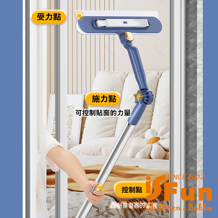 【iSFun】清潔神器 多功能可調角度窗戶玻璃清潔刷1.2米/藍