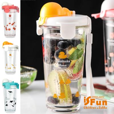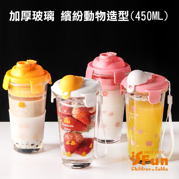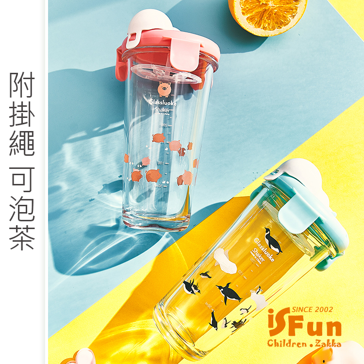 【iSFun】飛翔動物*附繩隨身泡茶玻璃水杯450ML/粉豬