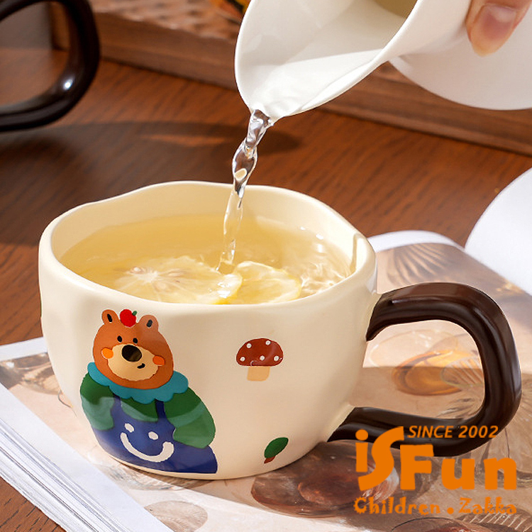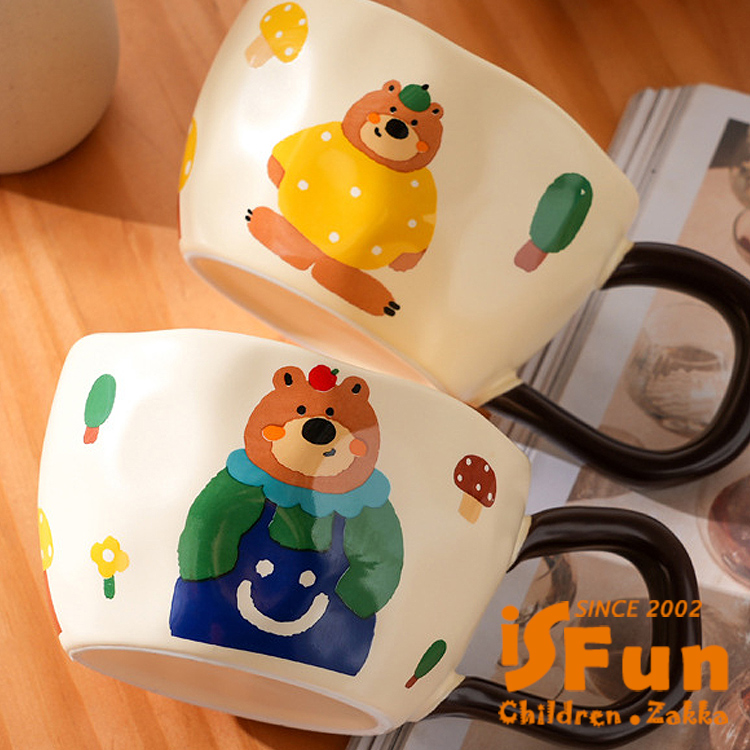 【iSFun】可愛小熊 高顏質陶瓷馬克杯茶杯330ml/藍綠衣