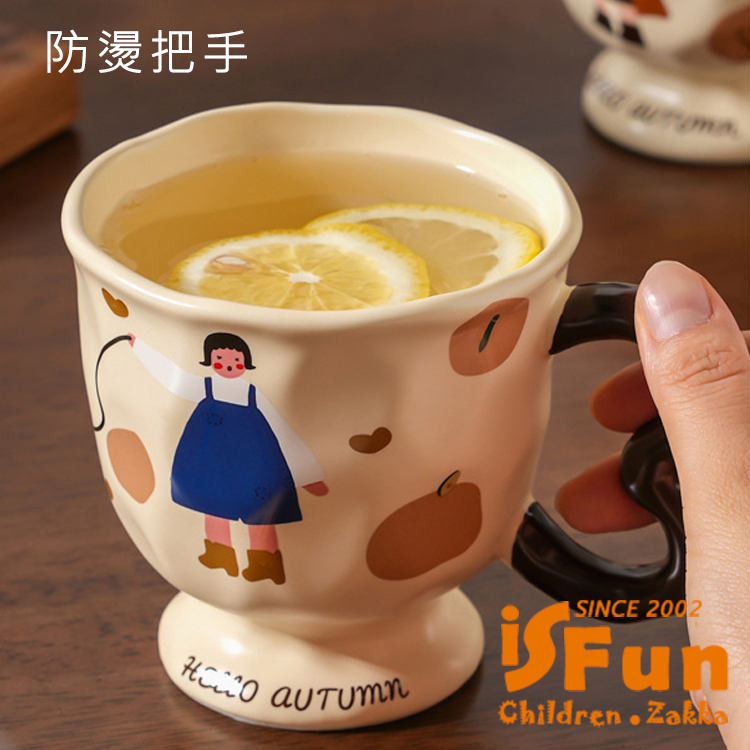 【iSFun】復古女孩 優雅可愛陶瓷高腳馬克杯400ml/綠短裙