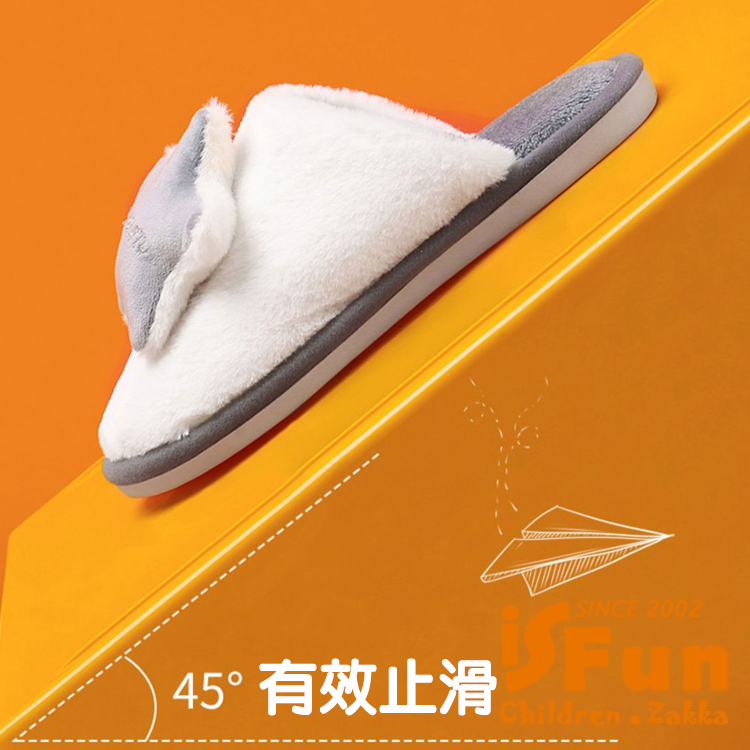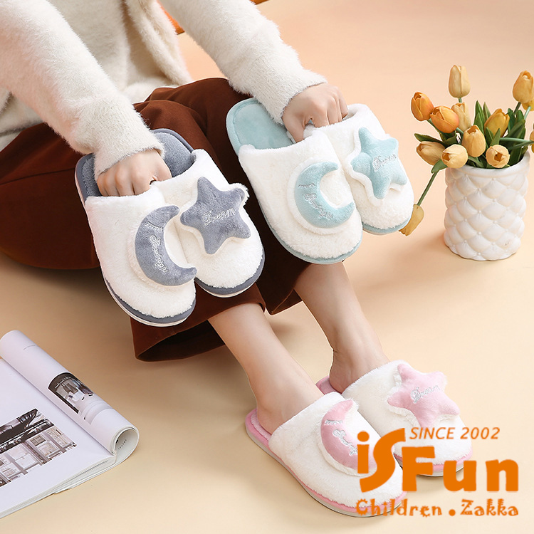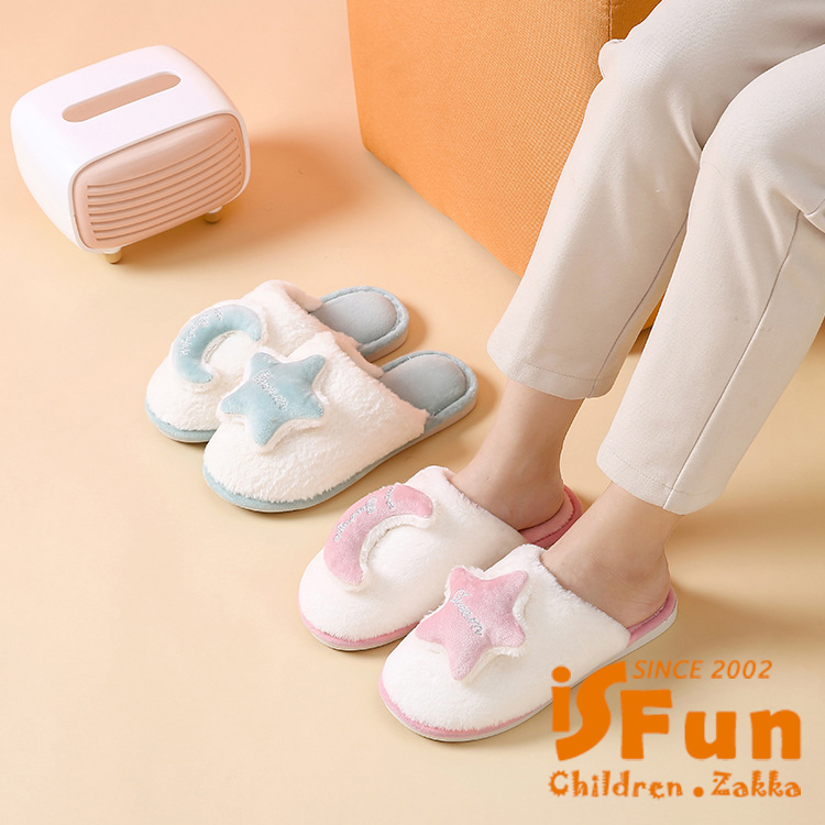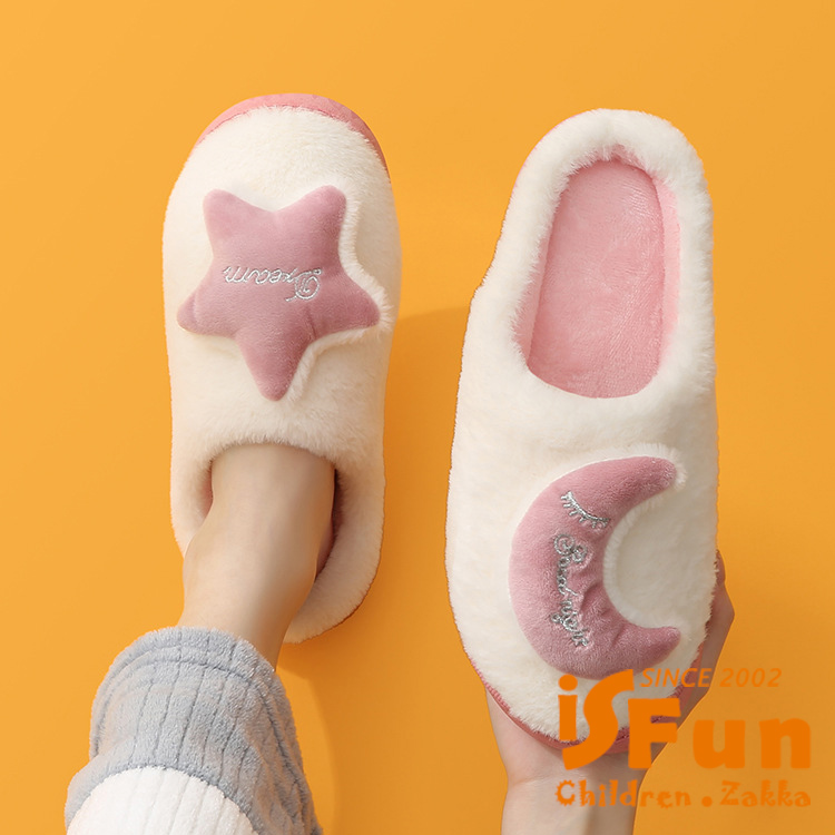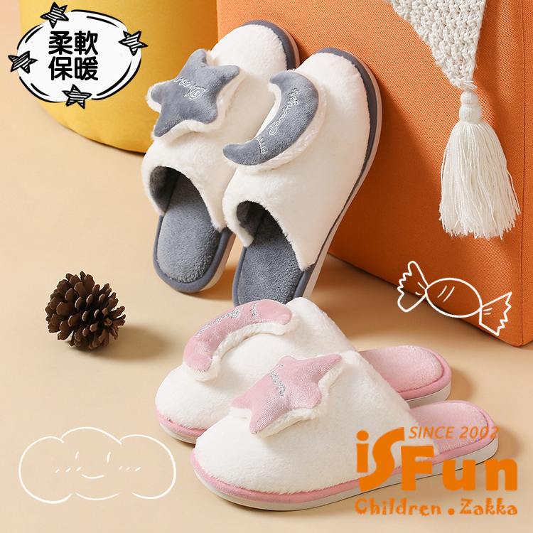 【iSFun】雅致星月 秋冬厚底防滑毛毛室內拖鞋/3839號黑白